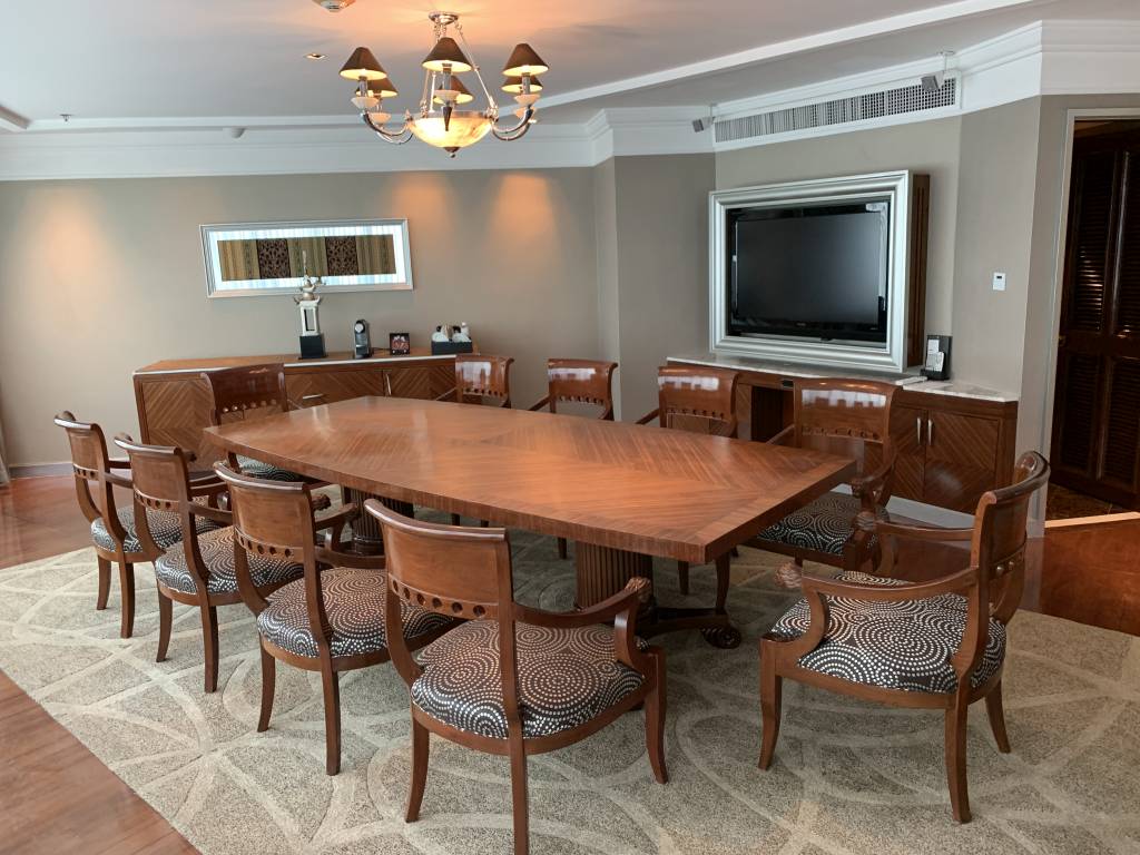 - Der 150 Quadratmeter riesigen Diplomatic Suite mit einem Konferenztisch für bis zu zehn Personen