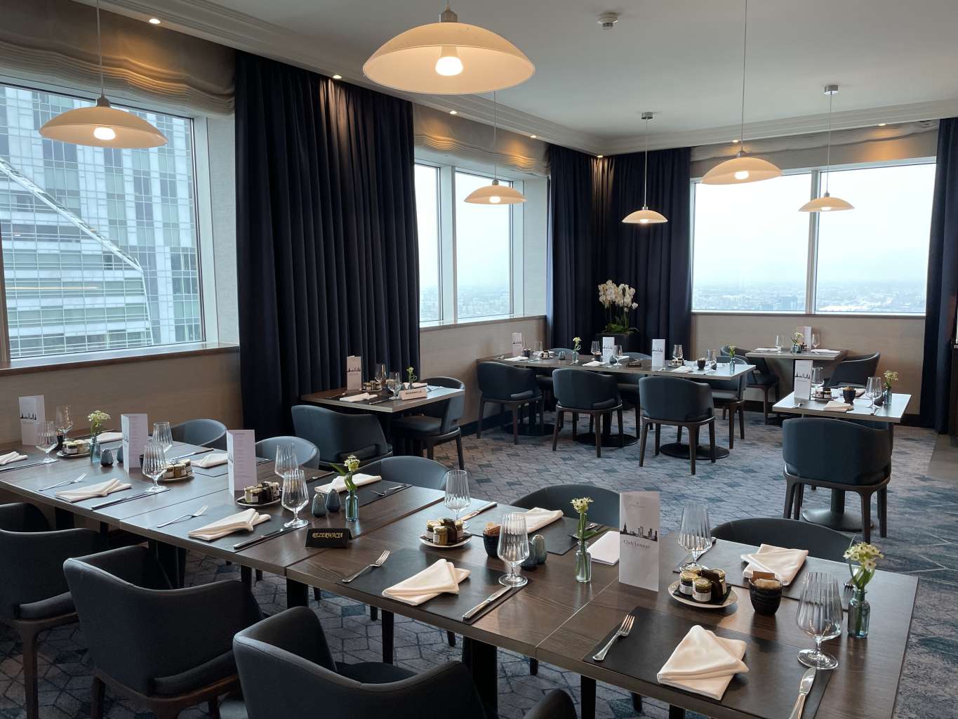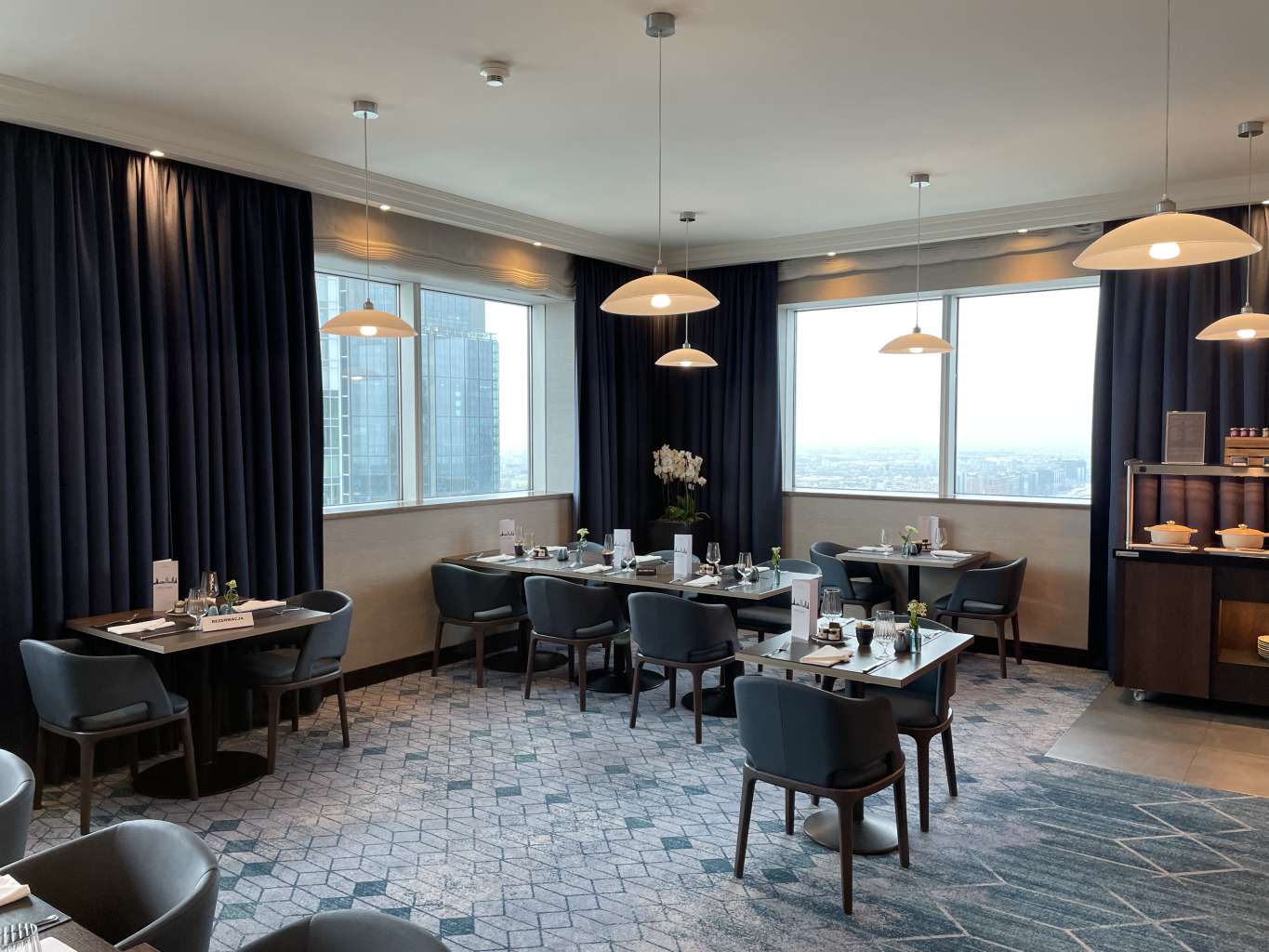 Der Club InterContinental befindet sich auf der 41. Etage des Hotels zusammen mit einigen Club-Zimmern. Wer die Lounge durch die Glastüren betritt, findet vor Kopf einige Barhocker mit Ausblick über Warschau. In dem Bereich stehen auch die Kühlschränke mit Getränken und zur Cocktail Hour werden hier auch die alkoholischen Getränke aufgebaut.