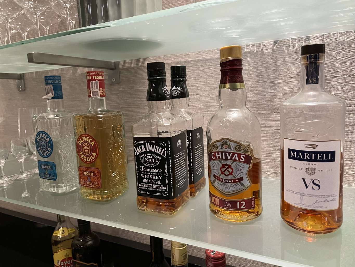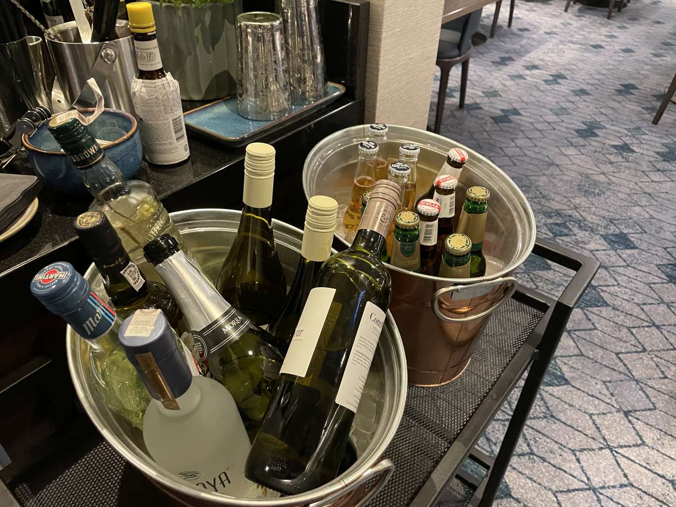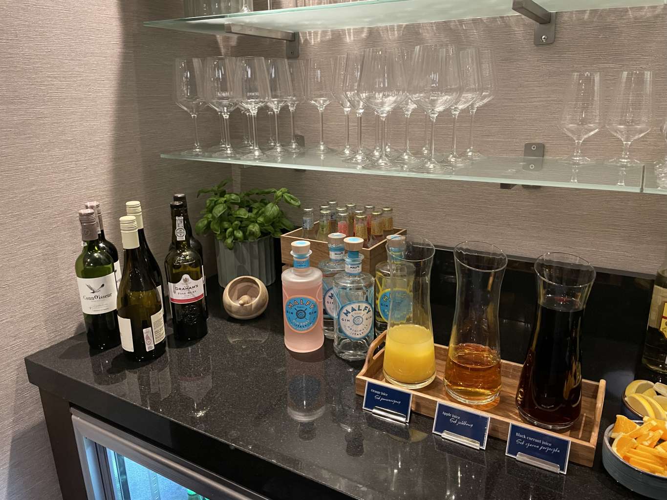 Darüber hinaus wird aber eine umfangreiche Auswahl an Spirituosen. Wer einen Gin & Tonic möchte, kann aus drei verschiedenen Sorten Malfy-Gin und mehreren Tonics wählen, ohne dafür aufstehen zu müssen. Denn die Getränke werden für Gäste zubereitet und Platz serviert. Wenn man es denn so will.