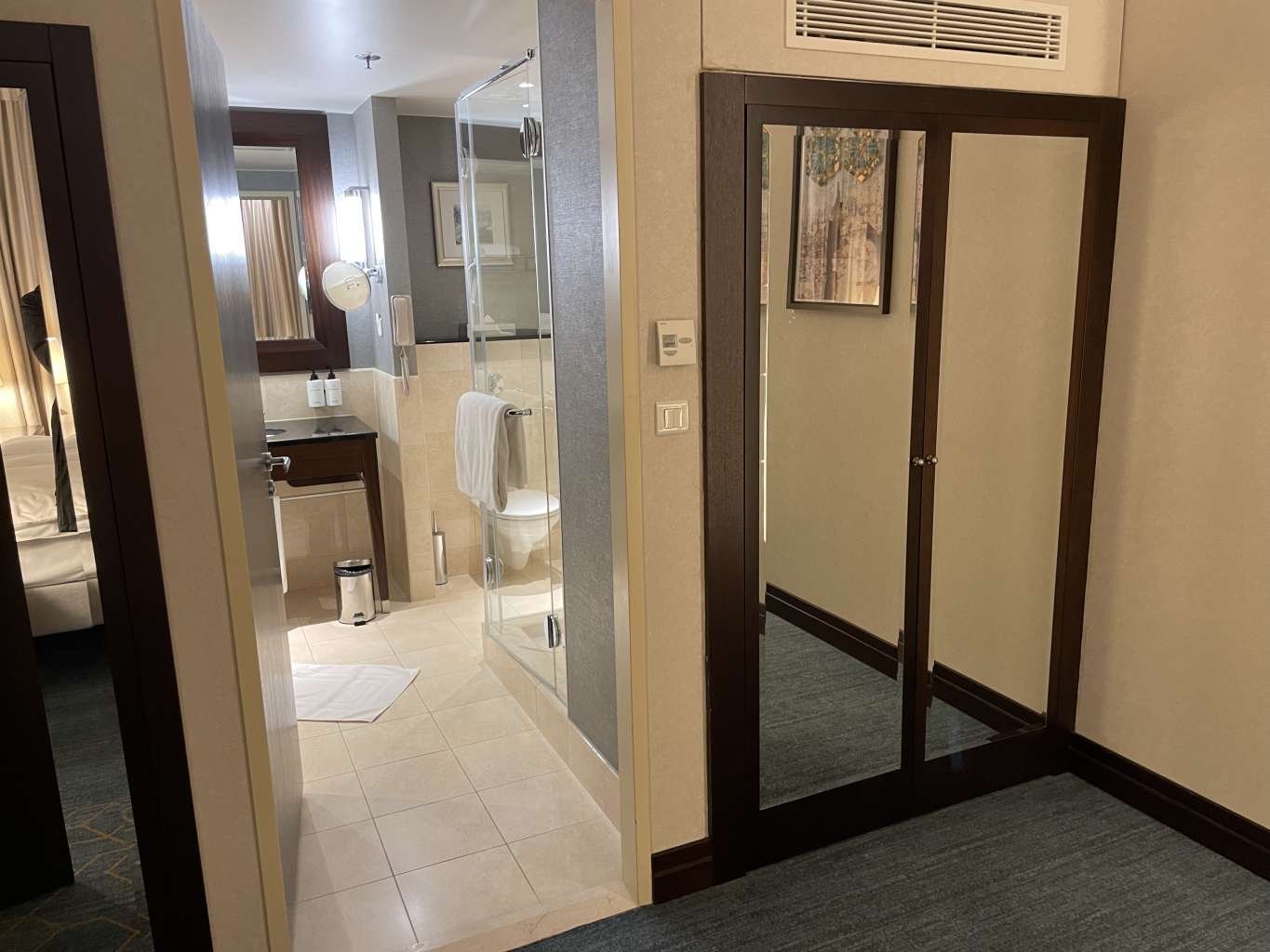 Unsere Suite hatte die Nummer 2005 und befand sich damit auf der 20. Etage. Das ist gemessen an den 45 Etagen, über die das InterContinental Warschau verfügt, relativ niedrig. Wenn meine Beobachtung jedoch zutrifft, war das eine der höchsten Etagen im Bereich der Langzeit-Apartments, auf denen sich bevorzugt halt auch die Suiten befinden.