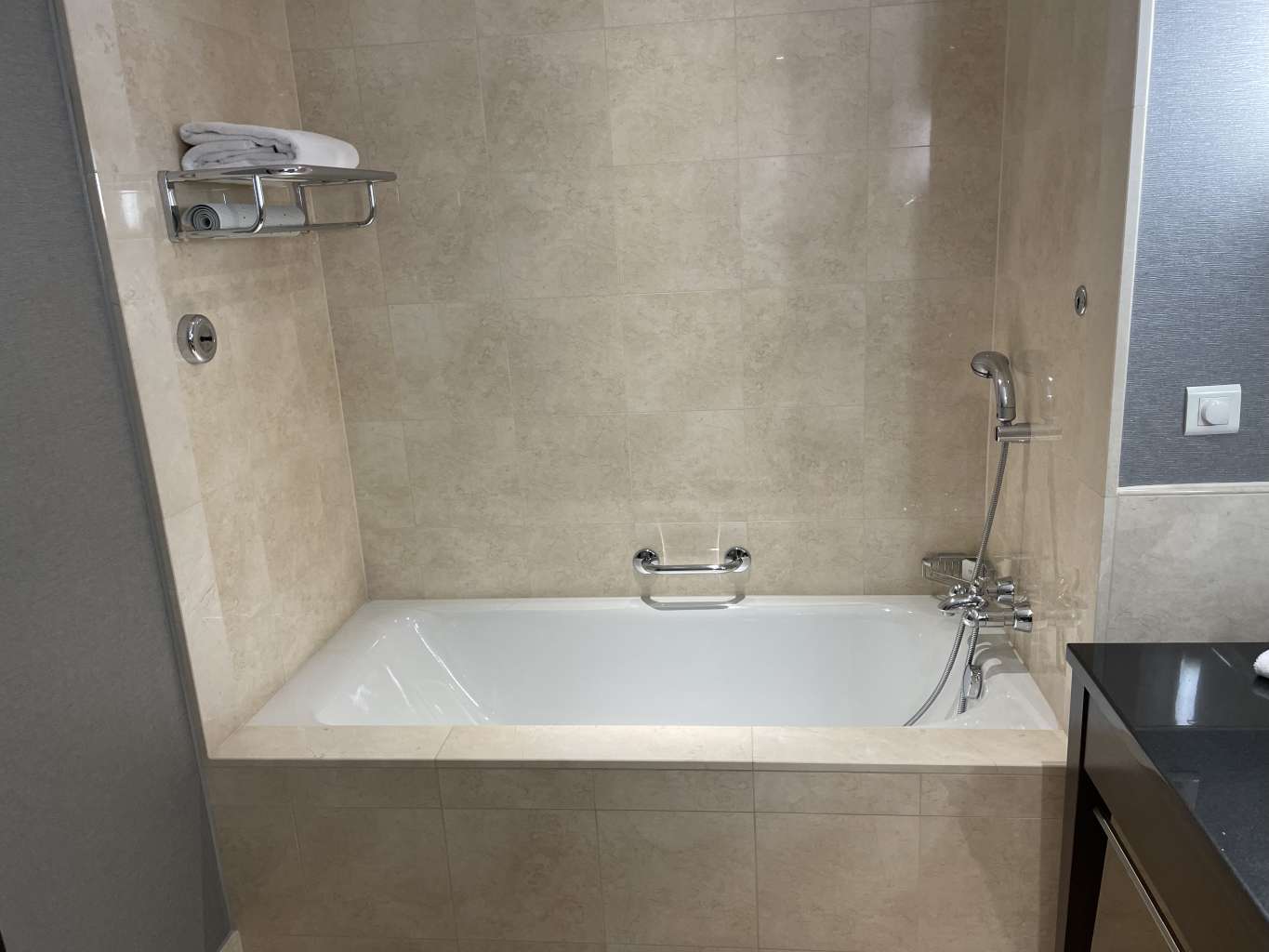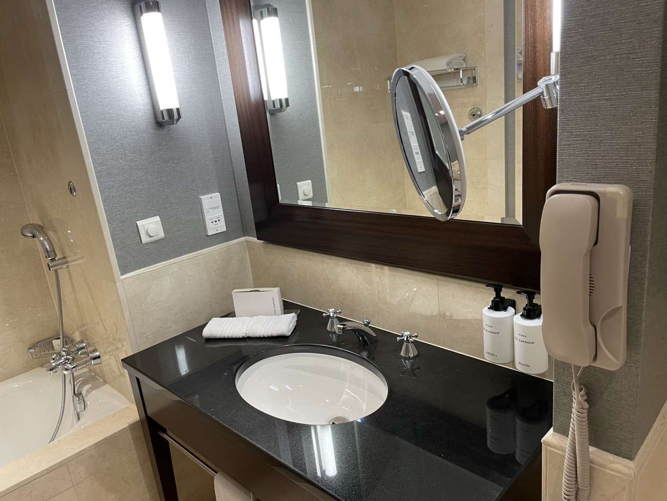 Die Pflegeprodukte entsprachen dem InterContinental Standard und waren daher von der Produktlinie Bal d’Afrique von Byredo. Daneben gab es noch ein paar weitere Amenities und natürlich konnten wir es uns auch in Bademantel und Slippern gemütlich machen.