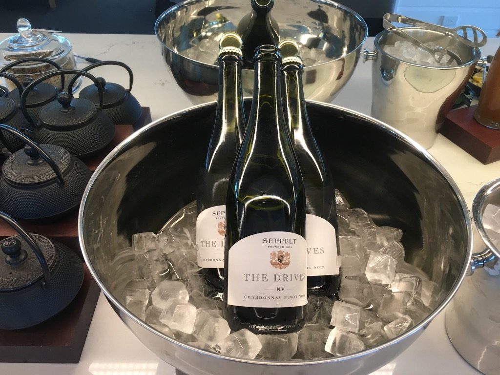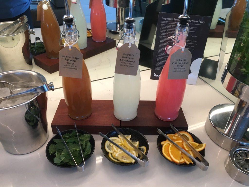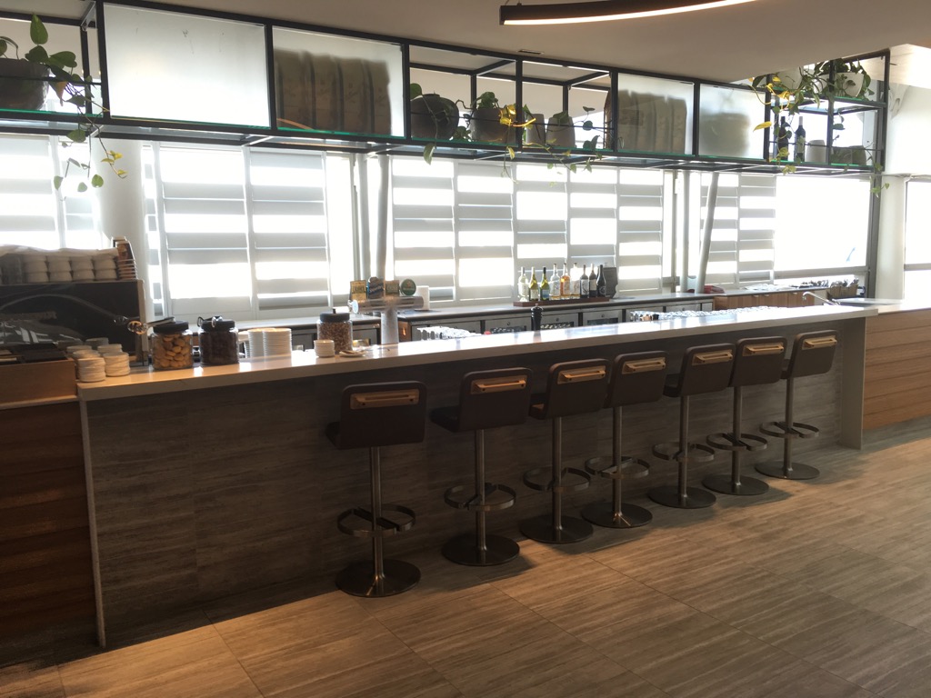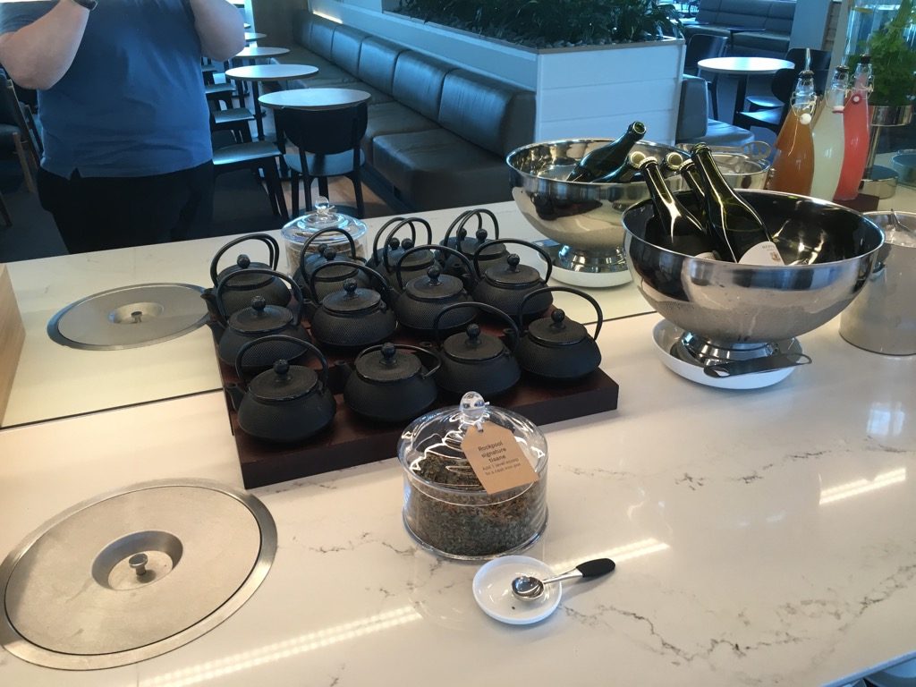 Neben der bedienten Bar im vorderen Bereich der Lounge, gab es noch eine kleine self service Bar im Loungebereich. Hier gab es neben Tee und Kaffee auch Wein und Champagner, sowie Limonaden. Alle weiteren Getränke konnte man sich an der Bar ausschenken lassen. Allerdings wurde mir mein Glas auch mehrfach von einem der Kellnern aufgefüllt, was ich für eine Business Class Lounge sehr bemerkenswert fand.