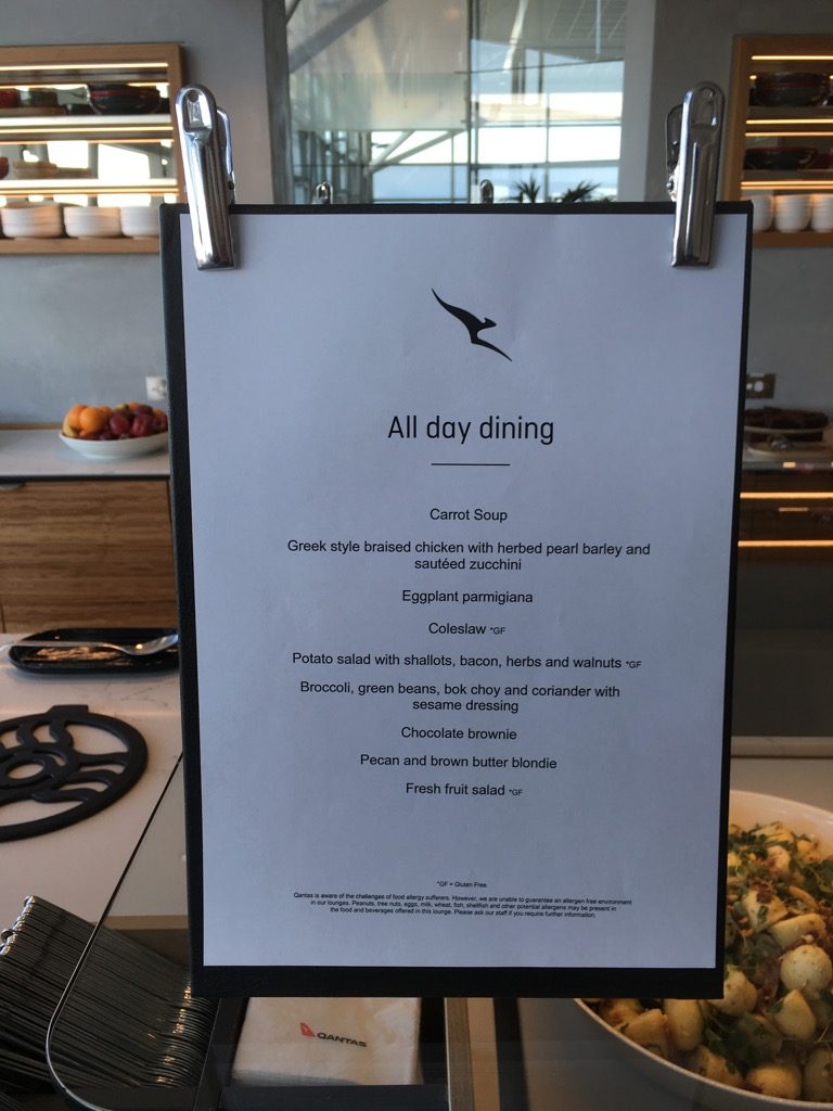 Auf dem Buffet gab es neben einigen Salaten auch mehrere warme Speisen und Suppen. Alles wirkte auf mich sehr hochwertig, wobei ich hier nichts probiert habe. Während meinem Besuch wurden auch frische Pommes Frittes von einer Kellnerin an die Gäste verteilt, welche viele Fans fanden. Auf ein a la carte Menü hat man in der Qantas Lounge Brisbane allerdings verzichtet.