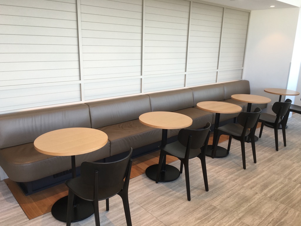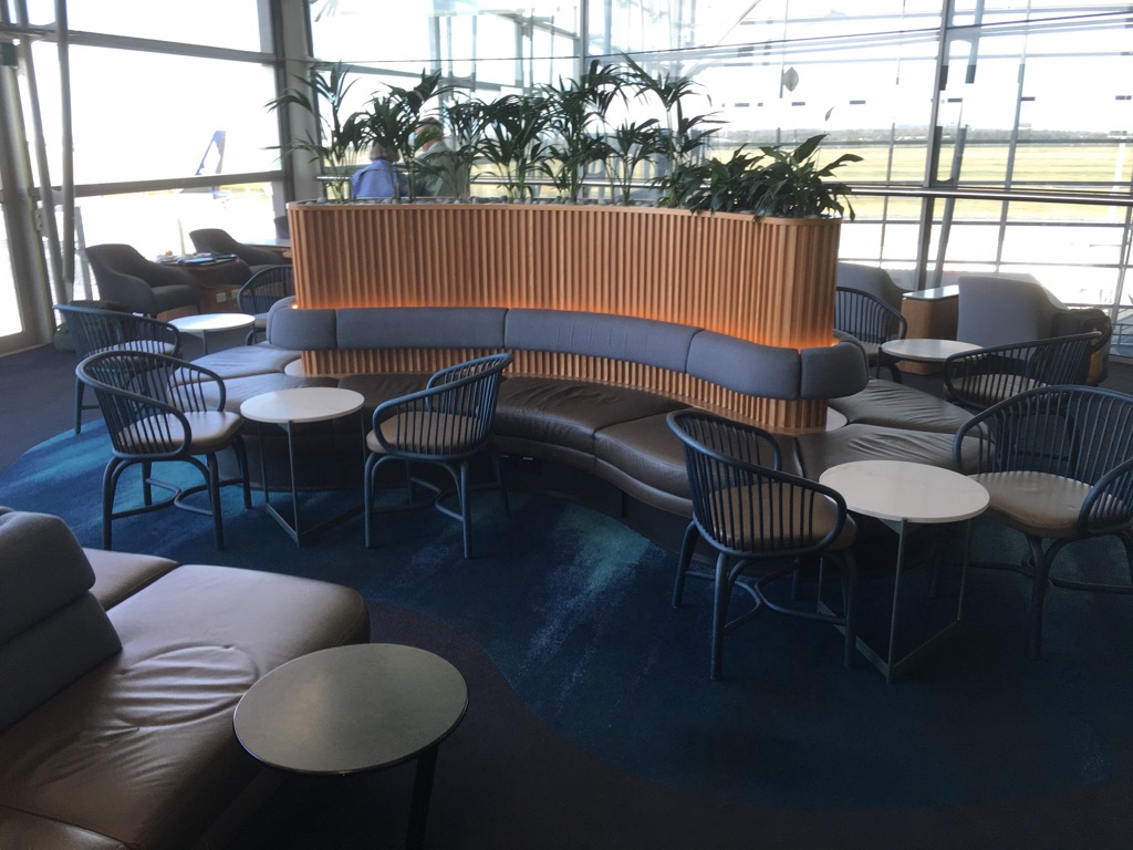Entlang der großen Fensterfront hin zum Terminal befindet sich der eigentliche Loungebereich mit vielen Sesseln und Bänken in verschiedenen Sitzgruppen. Durch die aufgelockerte Anordnung wirkte die Lounge nie besonders voll. Extrem positiv sind mir die vielen Steckdosen an allen Sitzplätzen aufgefallen. Allerdings gibt es hier „nur“ australische Steckdosen und keine internationalen Steckdosen, wie man es z.B. im Flugzeug hat.