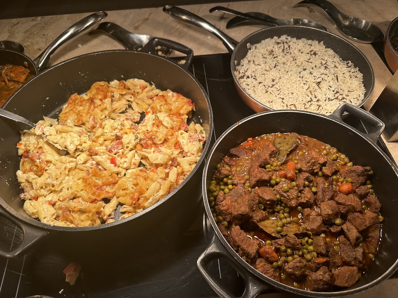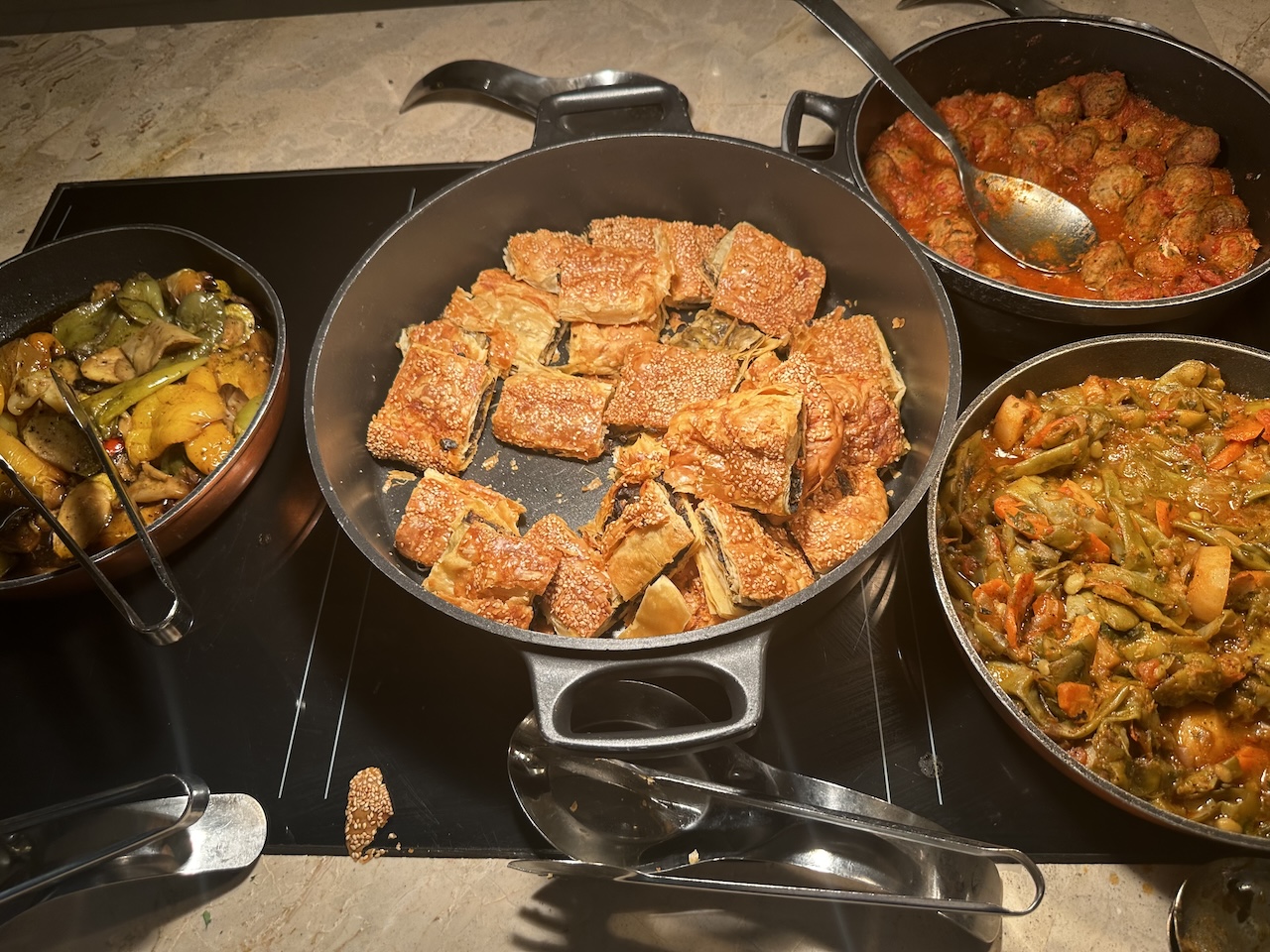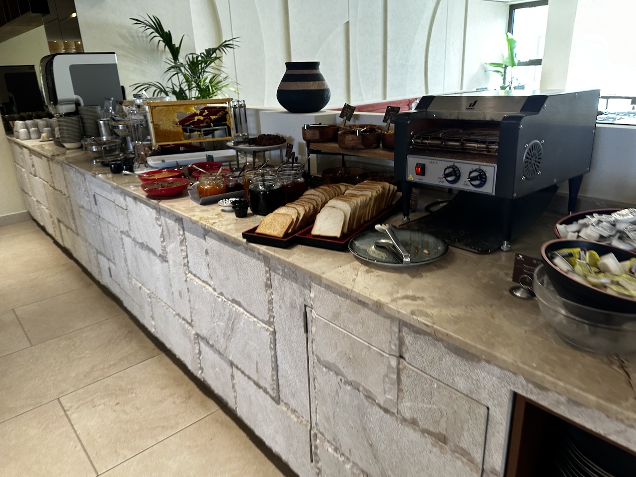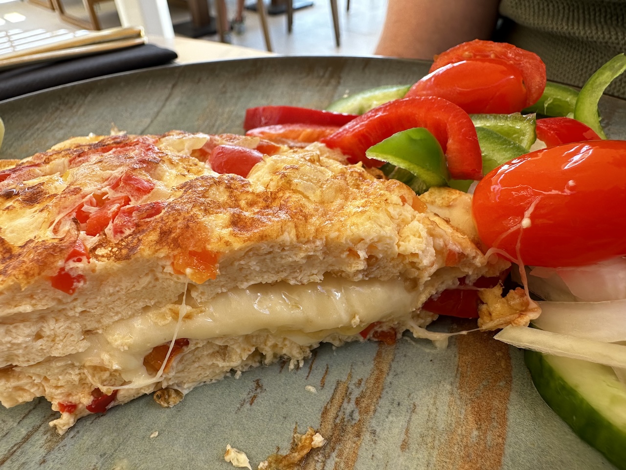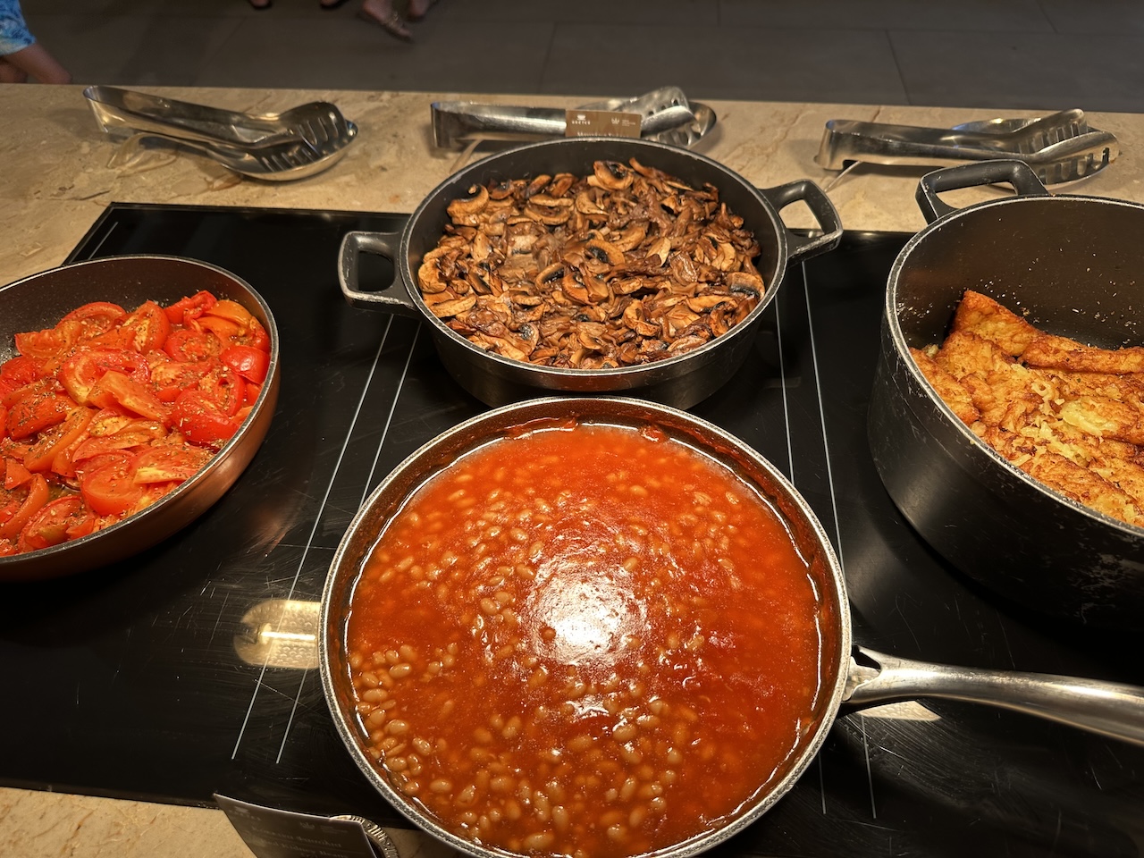 Dort gibt es morgens eine breite Auswahl an kalten und warmen Gerichten. Dazu gehören auch warme Eierspeisen, wer möchte lässt sich das Omelette auf Wunsch zubereiten.
