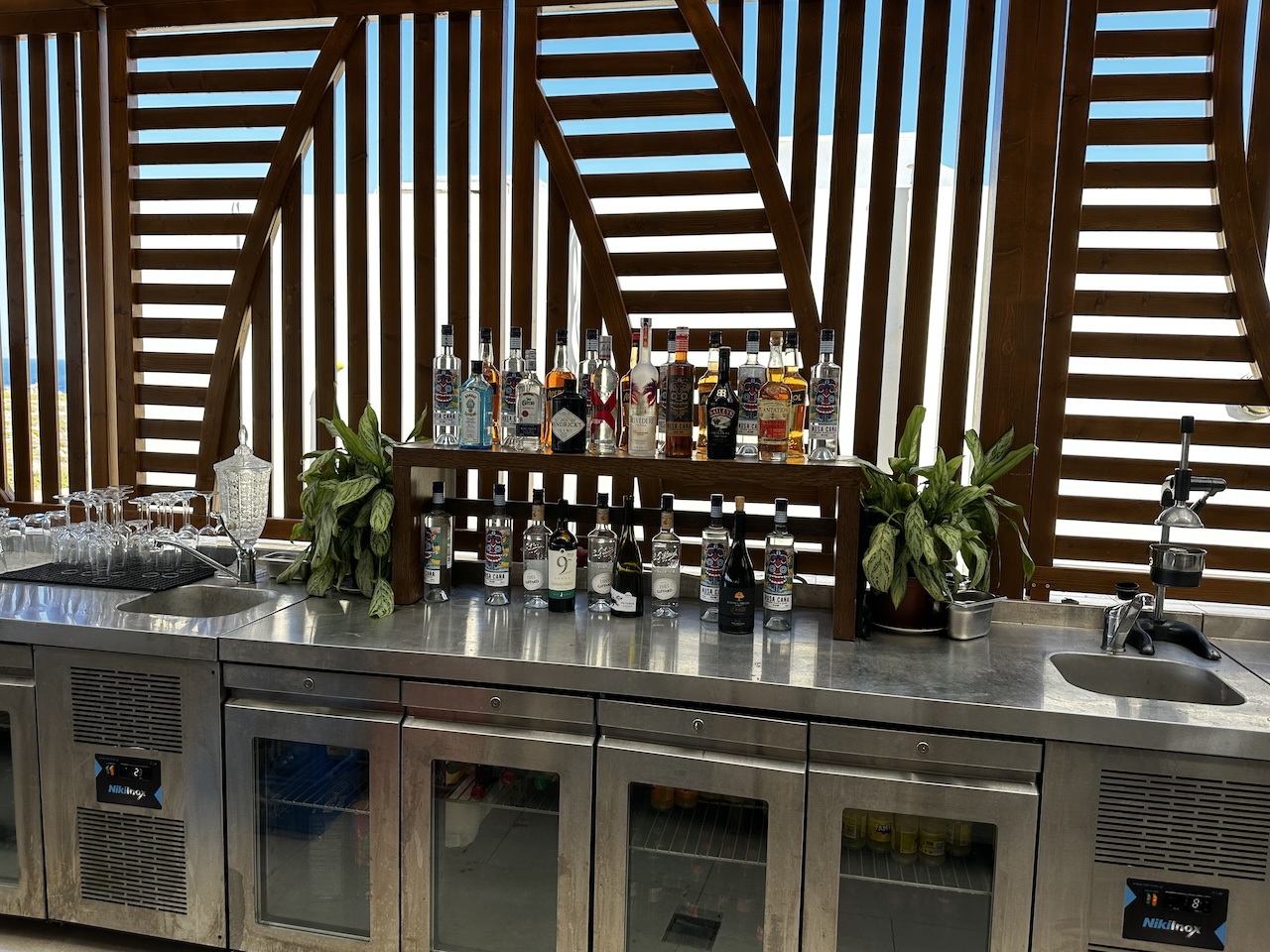 Getränke werden abends getrennt abgerechnet, kaltes Wasser wird aber kostenlos an den Tisch gebracht. Die Weinkarte ist umfangreich, es gibt auch Longdrinks und Cocktails, das Preisniveau ist hoch. Ein gezapftes Bier in der Größe 0,33 Liter ist mit 7€ nicht ganz preiswert.