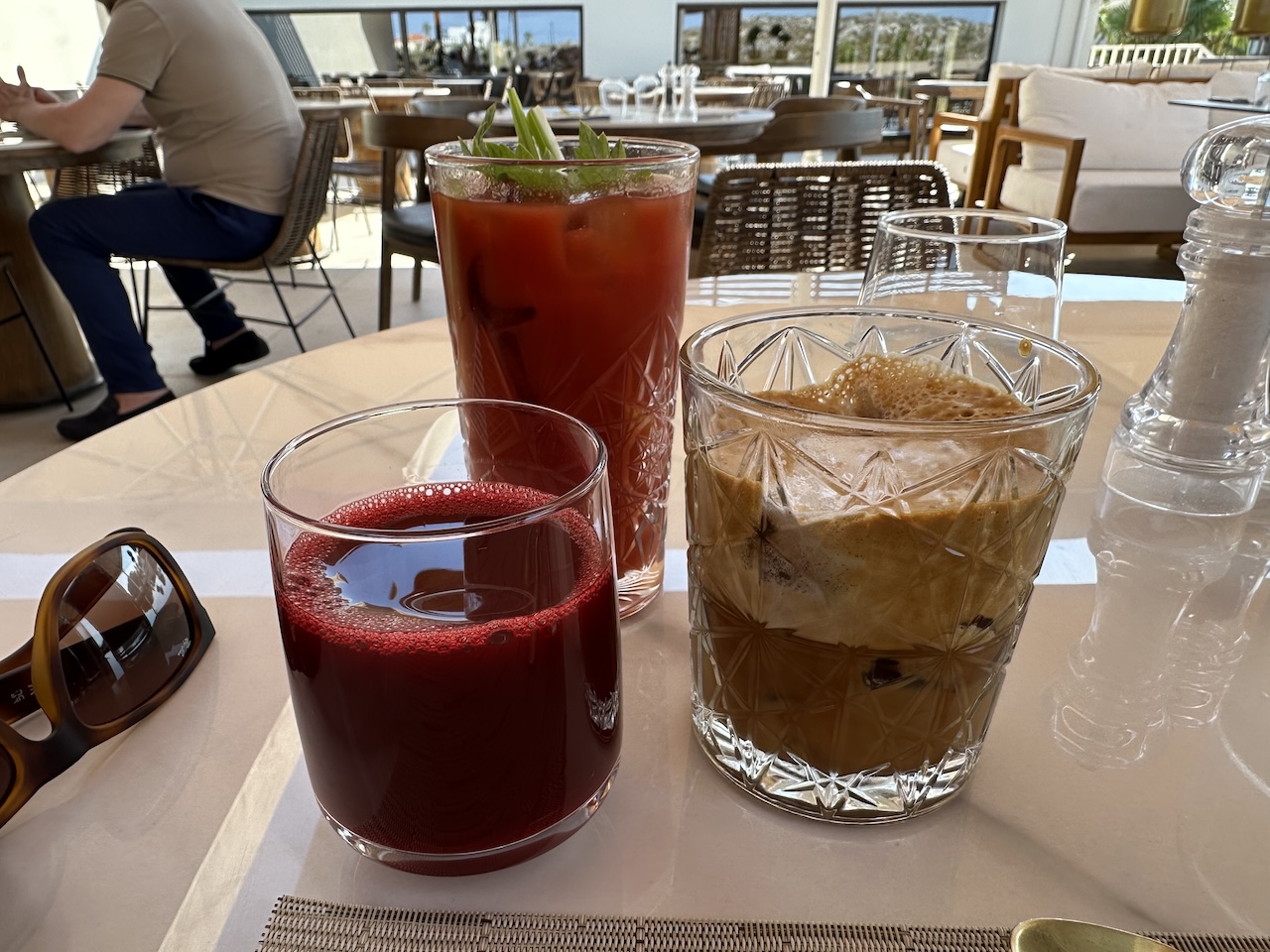 Zahlreiche Säfte und Kaltgetränke sind inklusive, auch Bloody Mary und Prosecco sind im Sortiment. Der Kaffee lässt zu wünschen übrig, es handelt sich leider um Instantware.