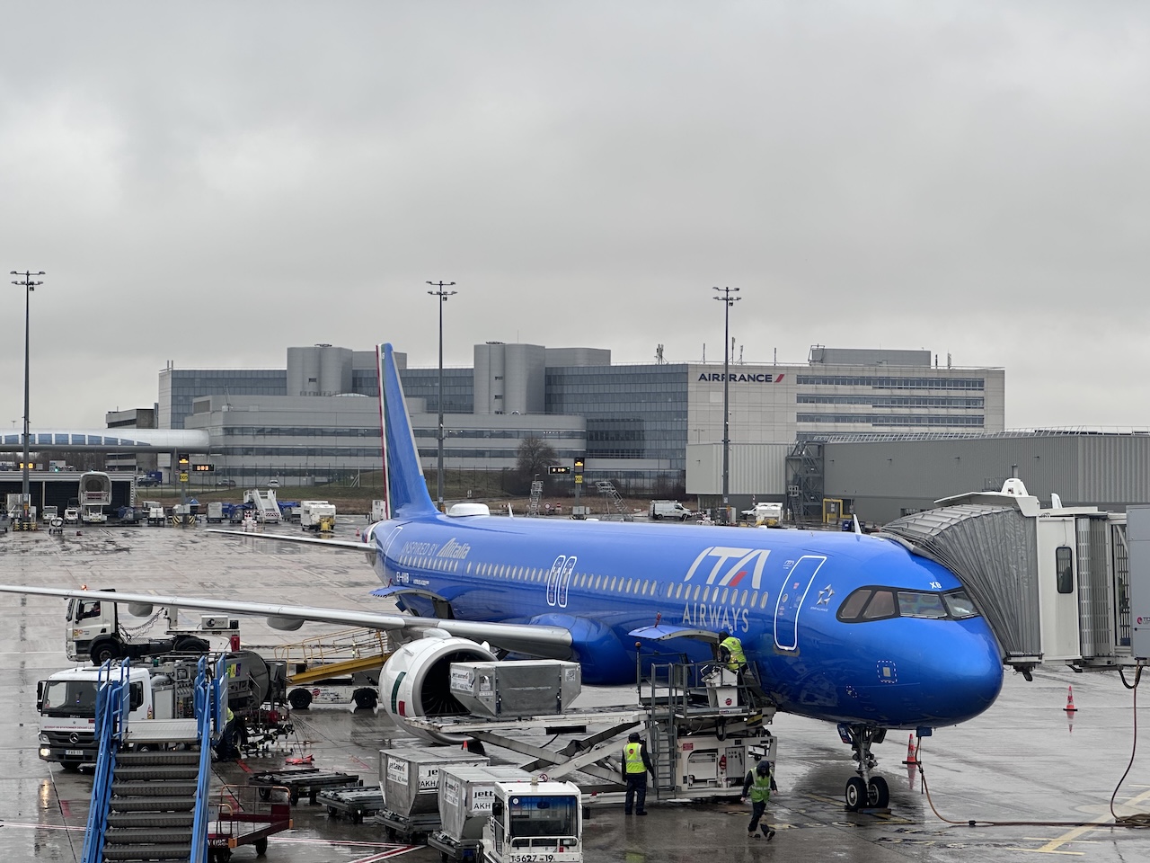 In Paris ist ITA Airways noch nicht bei den Airlines der Lufthansa Group, sondern in einem anderen Terminal angesiedelt. Statusgäste und Passagiere der Business Class werden in die Extime Lounge eingeladen. Nach einem guten Frühstück ging es dann für mich zum nahegelegenen Gate, wo der moderne Jet bereits parkte.