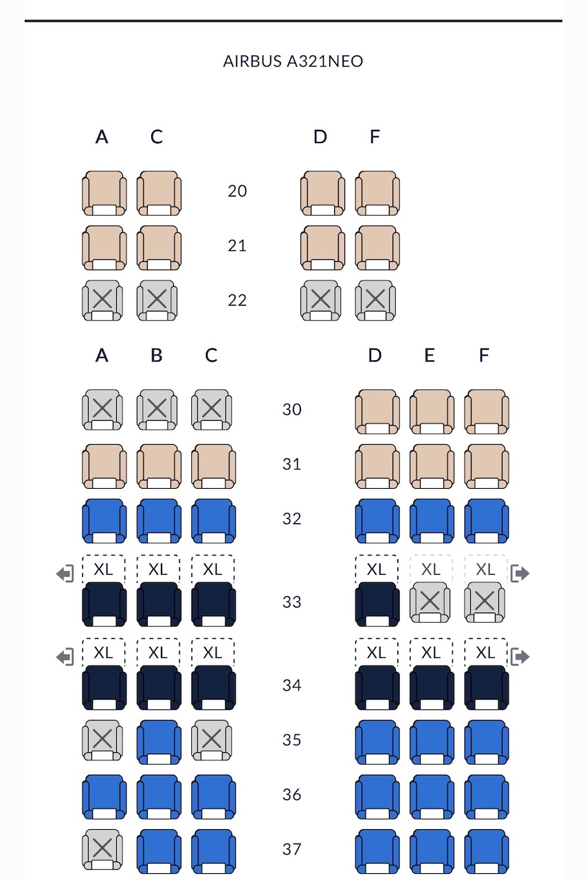 Die Reservierung der breiteren Sitze war sowohl bei der Buchung als auch beim Check-in kostenpflichtig, der Preis war mit 59 Euro und nicht gerade günstig. Das Mindestgebot für ein Upgrade in die Business Class startete bei 175 Euro, für den relativ kurzen Flug fand ich das ebenfalls zu teuer. Die Reise fand noch vor dem Beitritt zu Star Alliance statt, ich konnte zwar schon die Miles & More Karte hinzufügen, aber kein Upgrade gegen Meilen oder eVoucher vornehmen.