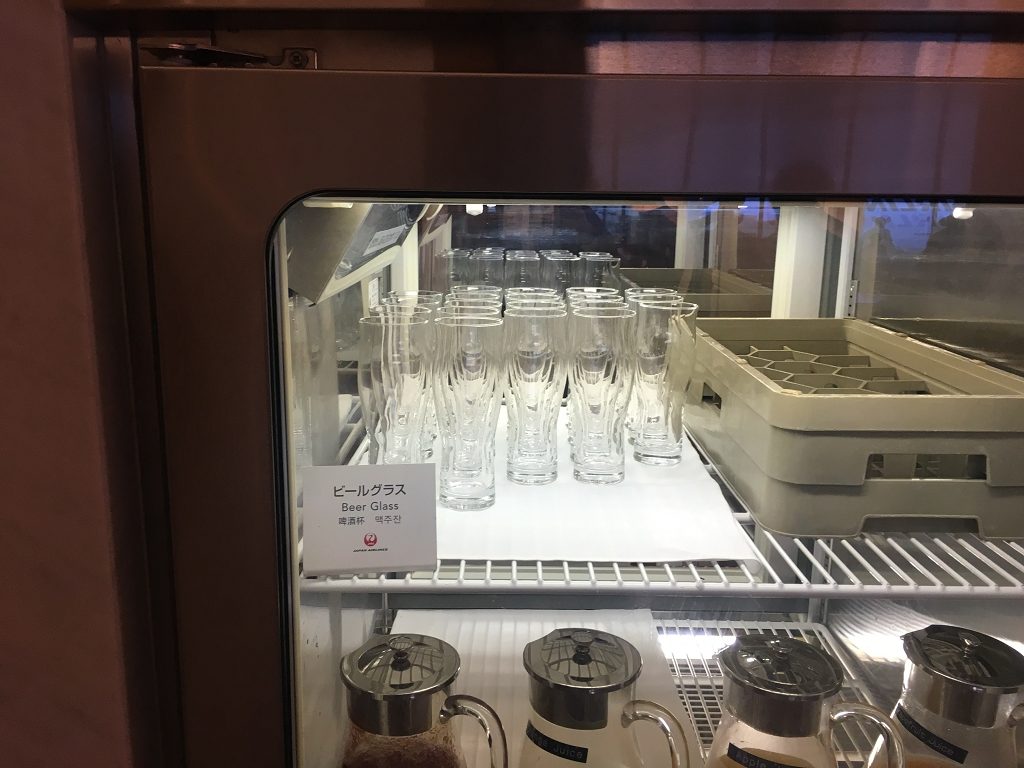Ich durfte die Lounge lediglich betreten, nachdem ich glaubhaft versichert habe, wirklich großen Durst zu haben. Die Sakura Lounge in der ich war, hat zwei Ebenen. Eine Ebene, auf der es auch Essen gab und eine untere Ebene, auf der es nur Getränke gab. Leider durfte ich wegen Überfüllung nicht in die obere Ebene, sodass ich unten noch ein paar Getränke und den Bierausschankautomaten ausprobieren konnte. Dieser ist jedoch so schön spektakulär, dass ich gleich ein Video machen musste.