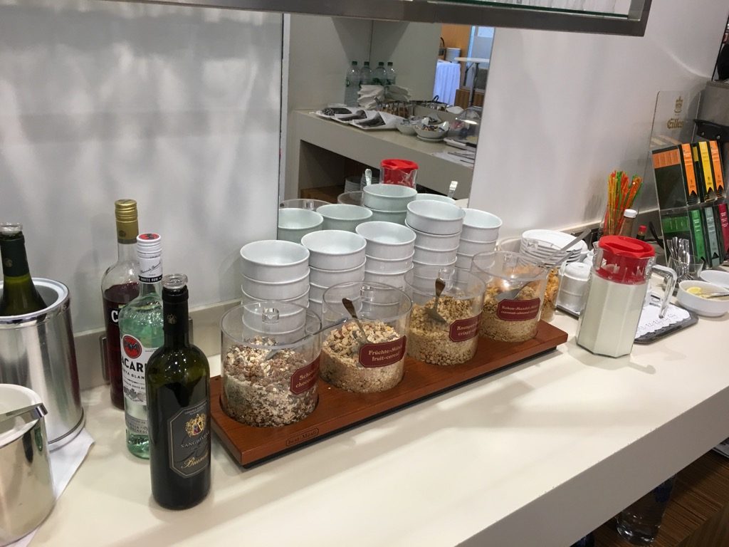 Im vorderen Bereich der Sakura Lounge befindet sich ein Buffet, an welchen sich die Gäste selbst bedienen können. Die Auswahl an Speisen ist hierbei recht ernüchternd und beschränkt sich am Morgen zum Frühstück auf Brot und Brötchen, Aufschnitt, Sandwiches und Müsli.