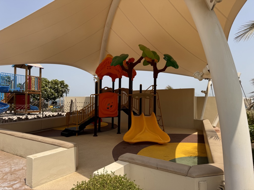 Generell hat das Hotel ein großes Angebot für den Nachwuchs. Neben den Kinderpools hat das Hotel noch zwei Spielplätze, eine Ecke mit Tischkicker und ähnlichem für größere Kinder, eine Kletterwand und einen Kids Club. Dieser darf von Kindern aller Altersgruppen besucht werden – Kinder unter 4 brauchen eine erwachsene Begleitperson. Der Kids Club (Sindbad Club) ist in drei Bereiche unterteilt. Es gibt eine Soft Play Area, einen mittleren Bereich mit Spielkonsolen und einen Bereich auf der anderen Seite, in dem getanzt, gebastelt und gespielt wird. Dieser Bereich war zum Zeitpunkt der Schließung am Abend sehr aufgeräumt (siehe Foto)