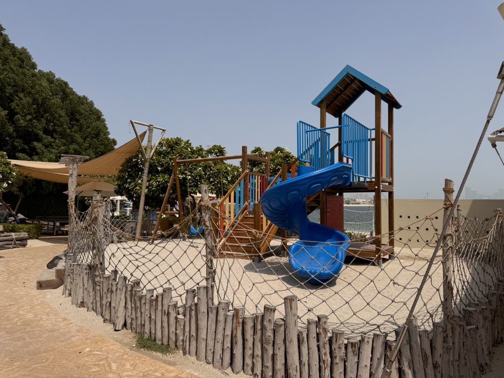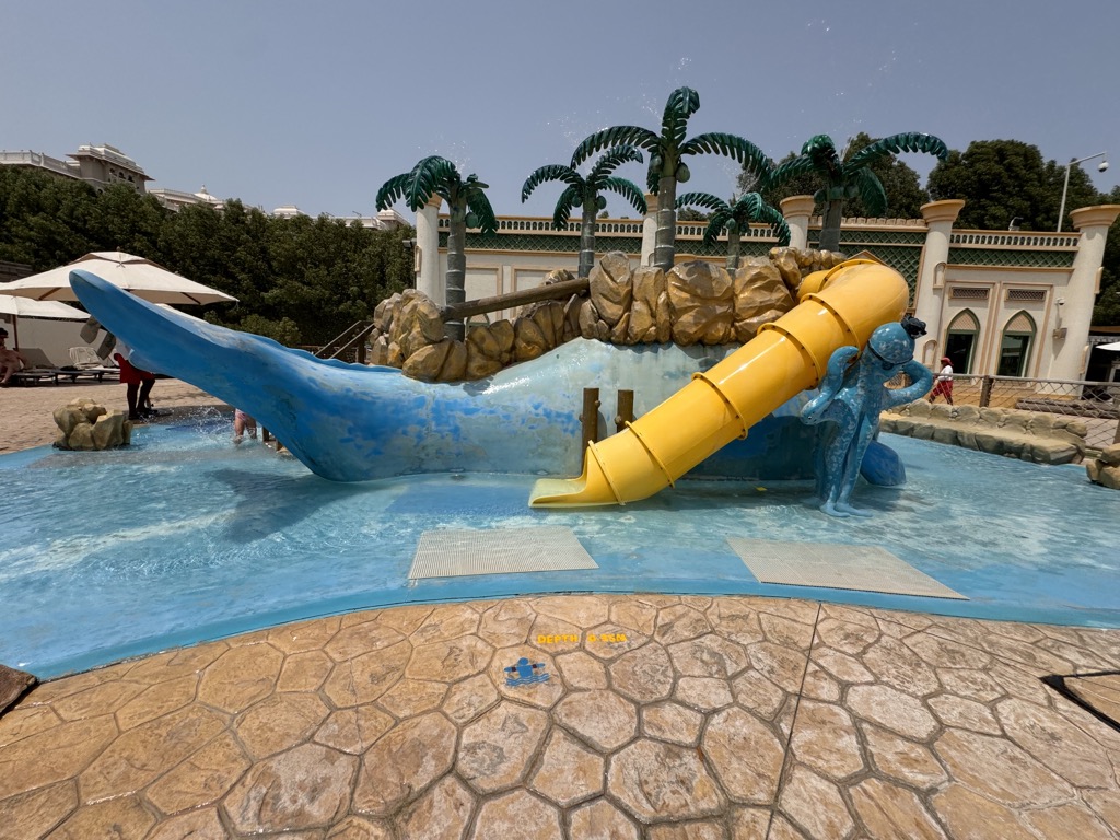 Im vorderen Bereich gibt es ein großes Wasser-Spielgerät mit mehreren Rutschen und Sprinklern, welches für die größeren Kinder (auch schon Kleinkinder) gut geeignet ist. Beide Bereiche sind immer von mindestens zwei Lifeguards überwacht, die immer bei der Sache sind und auch aufpassen, dass z.B. nicht mit Spielzeug gerutscht wird.