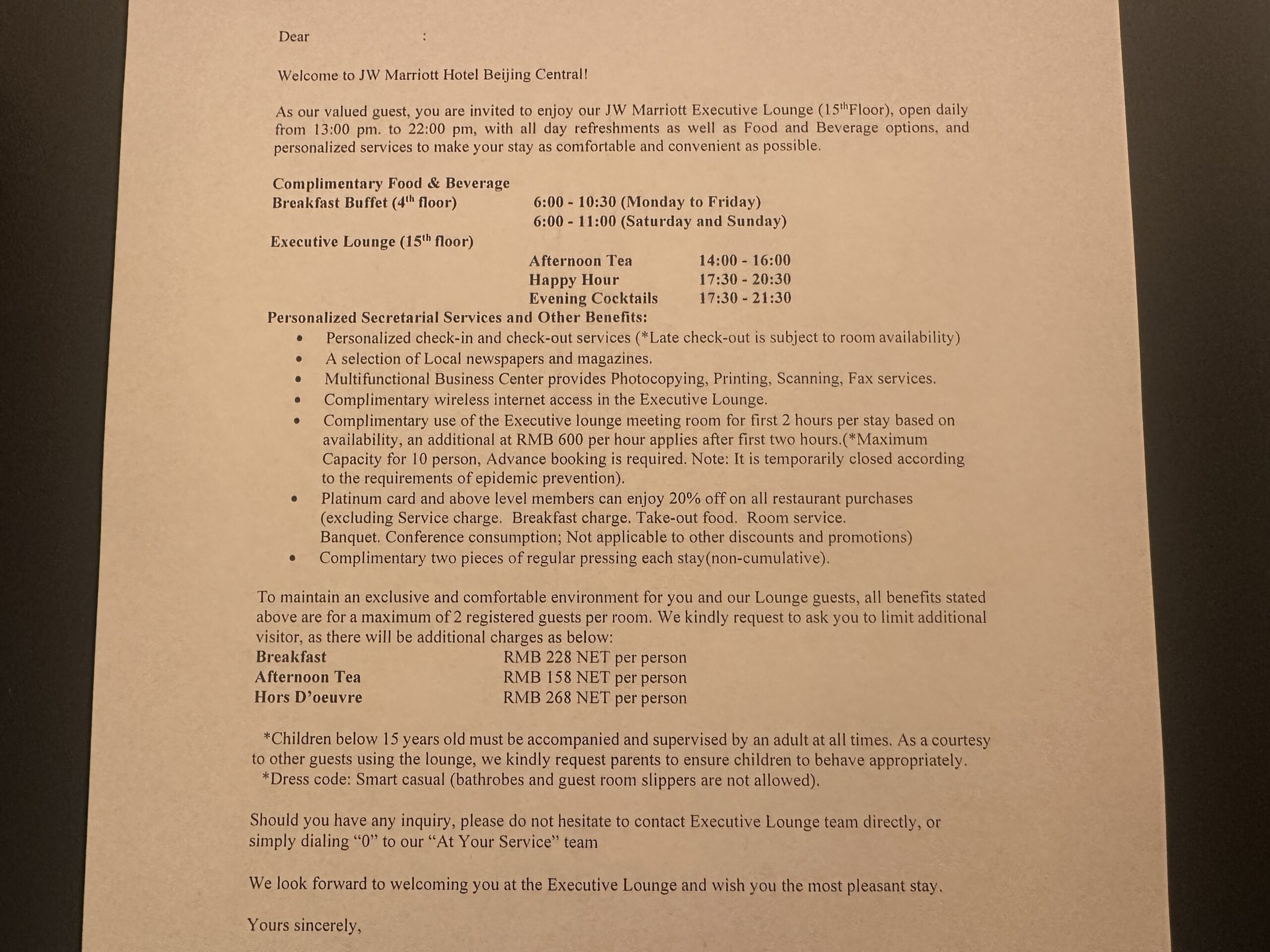 JW Marriott Beijing Central, Executive Lounge. Foto: Robert