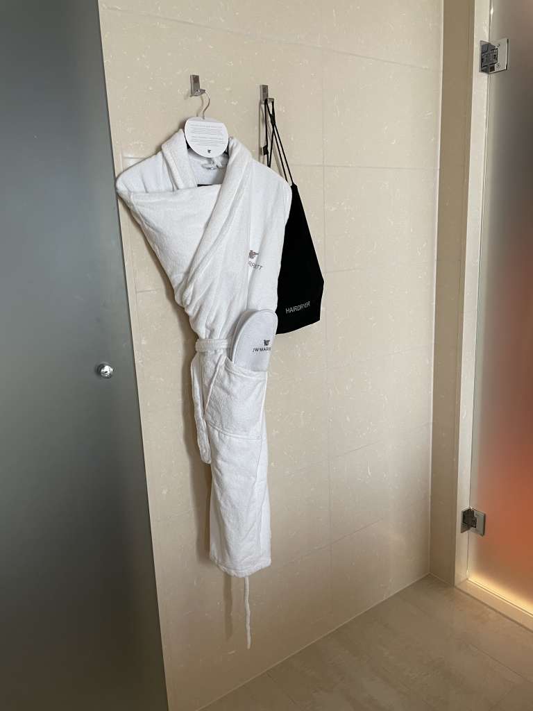 Das JW Marriott Hotel Frankfurt betreibt ein eigenes Spa. Das Harmony Spa bietet den Hotelgästen ein breites Spektrum an Anwendungen und Massage. Fitness, Pool und Sauna stehen extern im Fitness First zur Verfügung. Die Bereich sind tagsüber direkt über das Hotel zugänglich. Auf Grund von Bauarbeiten müssen Gäste jedoch einen kleinen Umweg auf sich nehmen. Am späten Abend geht es durch das Einkaufszentrum „My Zeil“ zum Fitness-Studio. In dem Fall bietet sich der Gang im Bademantel nicht an.
