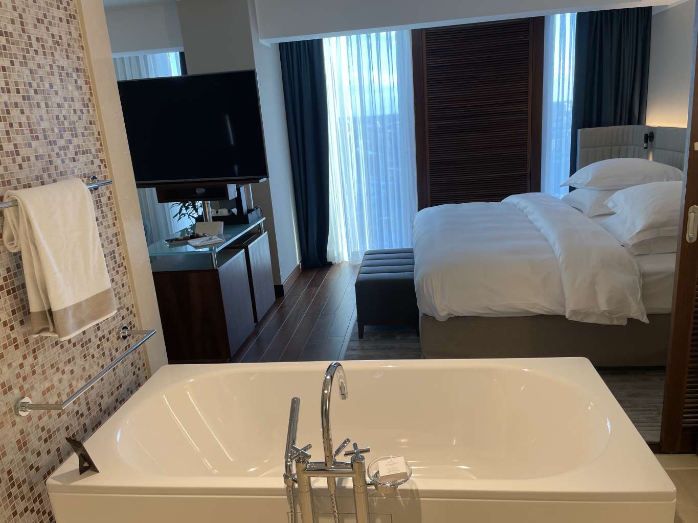 Nun haben sich mit meinem Marriott Bonvoy-Status zwar einzelne Vorteile gedoppelt, aber trotzdem schien die Buchung über das Frankfurtflyer Hotelportal dem Aufenthalt nochmals Super-Kraft zu geben. Alle Vorteile, mit denen sich die Hotels sonst eher schwer tun, waren plötzlich einfach da. So wie z.B. das Upgrade auf die Junior Suite, welche die Marriott Hotels sonst nur ungern rausgeben.