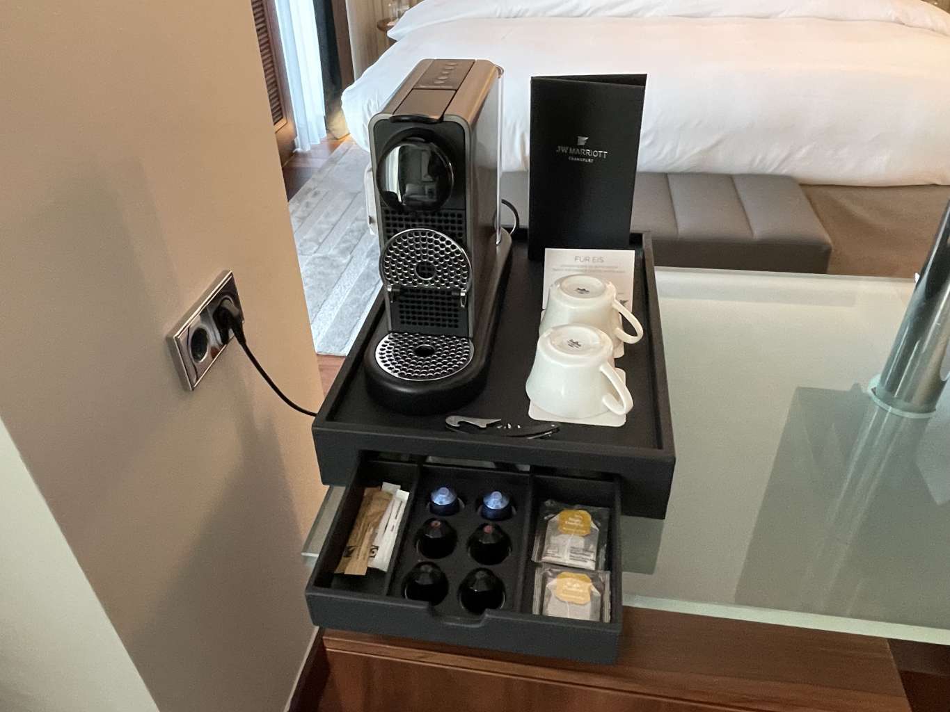 Da das JW Marriott noch über keine Club Lounge verfügt (die soll Ende des Jahres endlich verfügbar sein), gibt es die erste Füllung der Minibar kostenlos. Das war in meinem Fall eine günstige Alternative für das Hotel, da beim Check-Out nur eine Cola aus der Minibar fehlte.