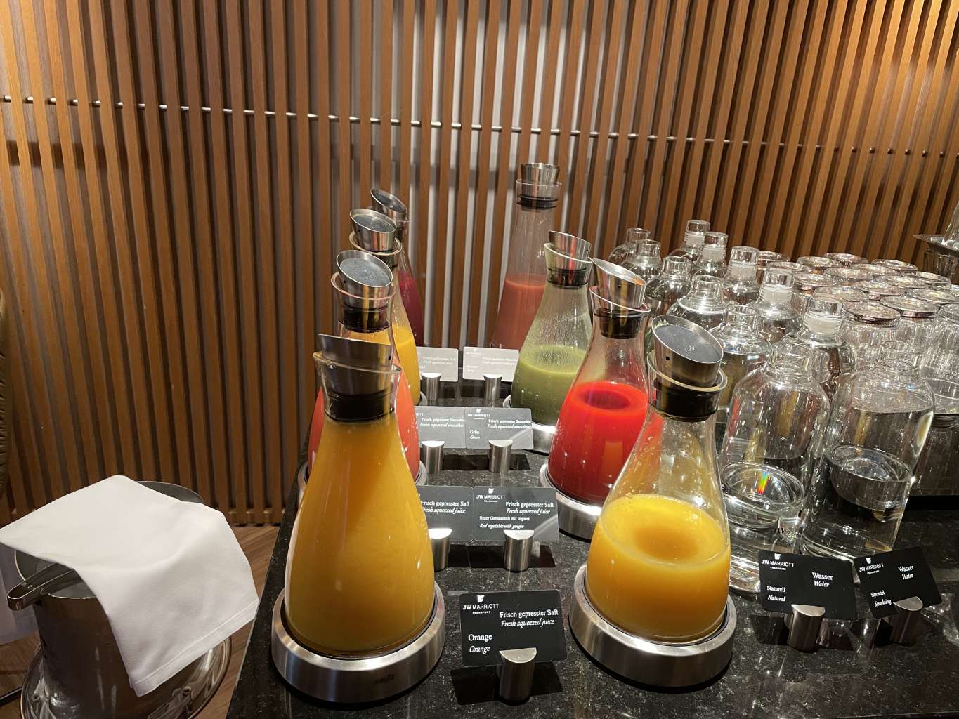 Vor kam ich allerdings noch an der Station vorbei, die durstige Gäste mit zahlreichen Säften, Smoothies, Wasser und Tee versorgt. Wenn man sich das nicht sowieso schon von dem sehr aufmerksamen und freundlichen Personal hat an den Tisch bringen lassen.