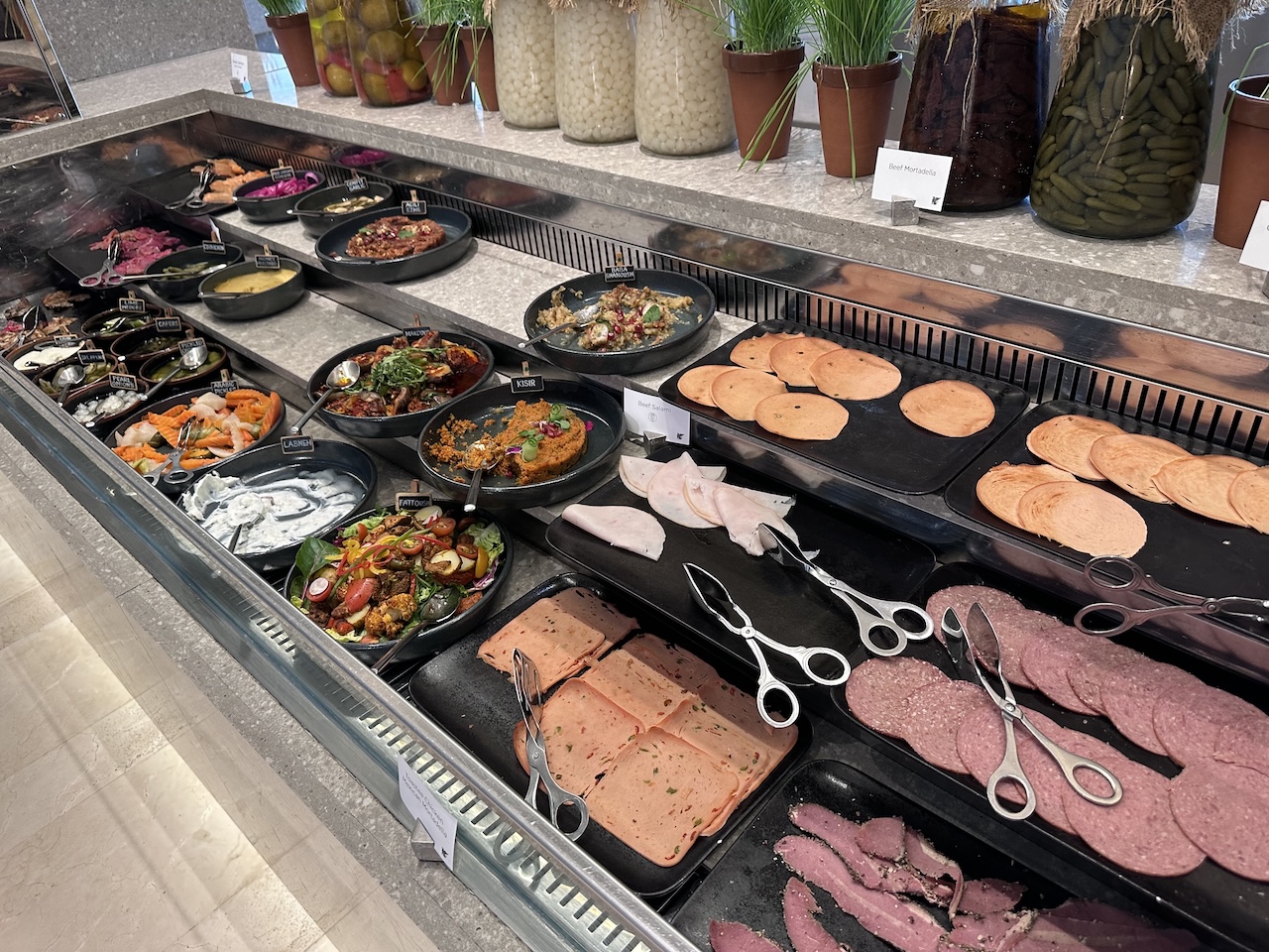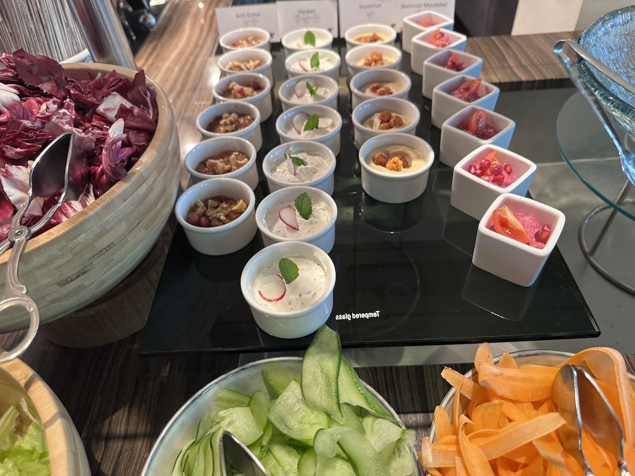Einige Dinge können an den Live-Cooking-Stationen bestellt werden, diese werden dann an den Tisch gebracht.