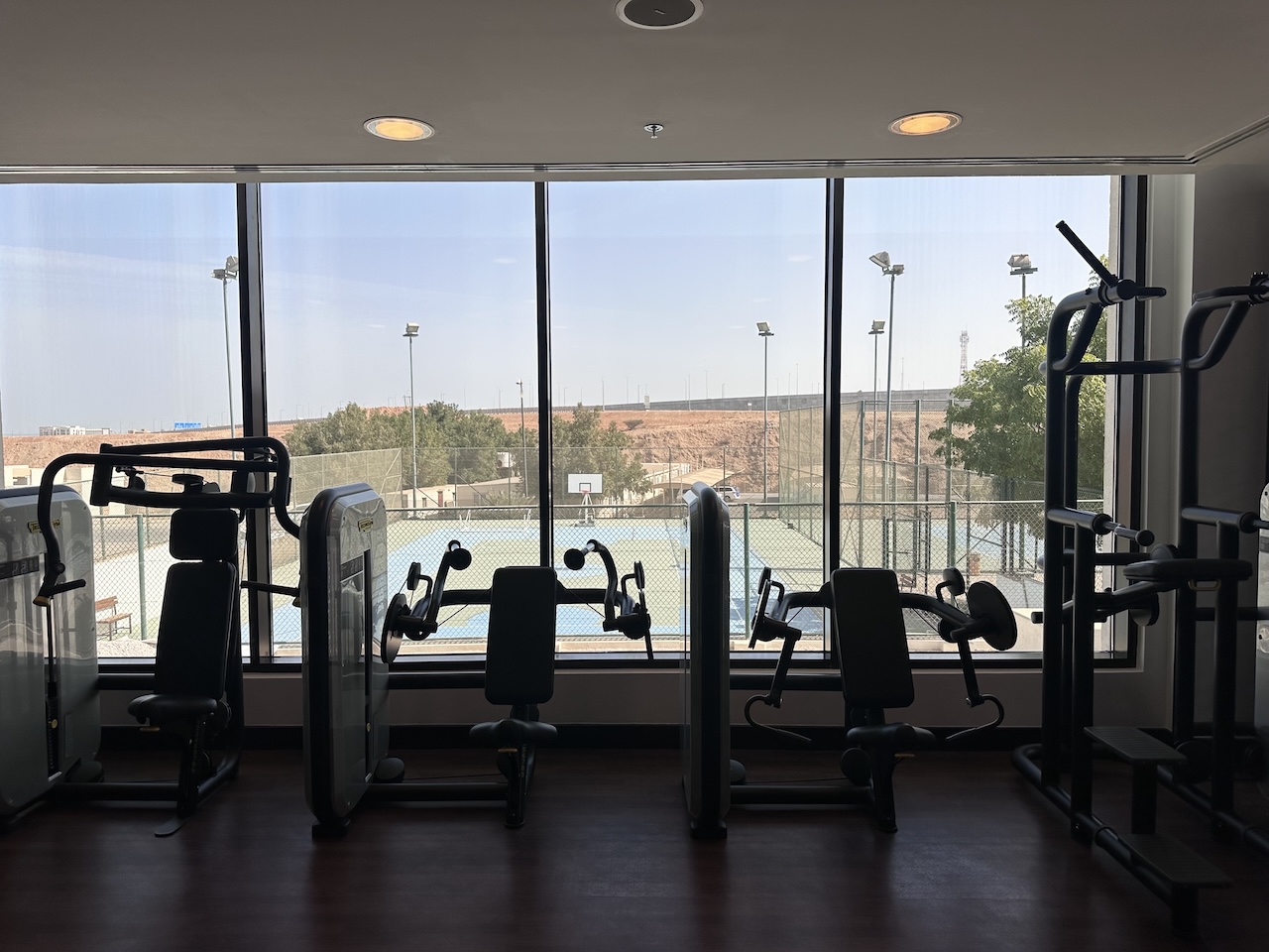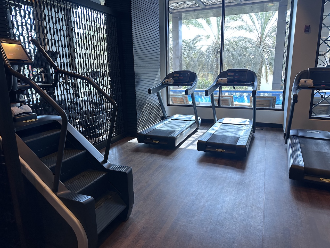 Durch den Spa-Bereich kommt man zum großen Fitnesscenter, dieses ist für ein Hotel wirklich ziemlich gut ausgestattet. Neben den vielen Geräten und Hanteln gibt es auch Getränke inklusive Kaffee.