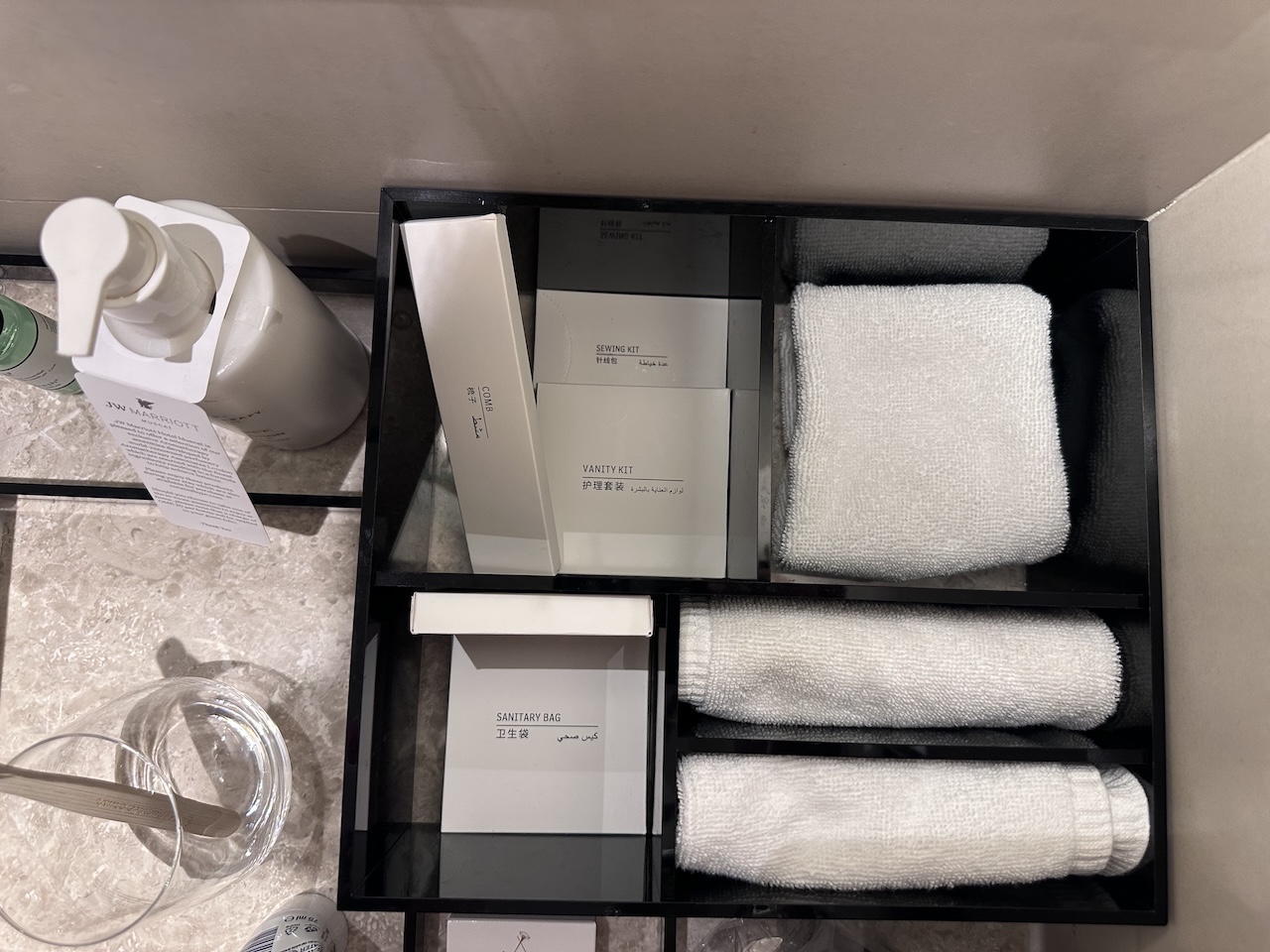 Das Label JW gehört zu den High-End-Marken bei Marriott, als Gast darf man also auch etwas erwarten. Normalerweise sind die Preise für eine Übernachtung auch durchaus höher als die 115 Euro, die wir bezahlt haben. In der Golfregion sind solche Tarife aber – je nach Saison – keine Seltenheit.