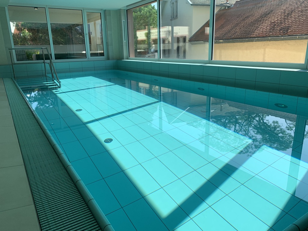 Auch über ein verhältnismäßig großes Indoor-Schwimmbad verfügt der Kaisergarten Hotel & Spa Deidesheim. Neben Liegen direkt am Pool, gab es noch einen separaten Ruheraum und eine Dachterrasse mit Loungemöbeln.