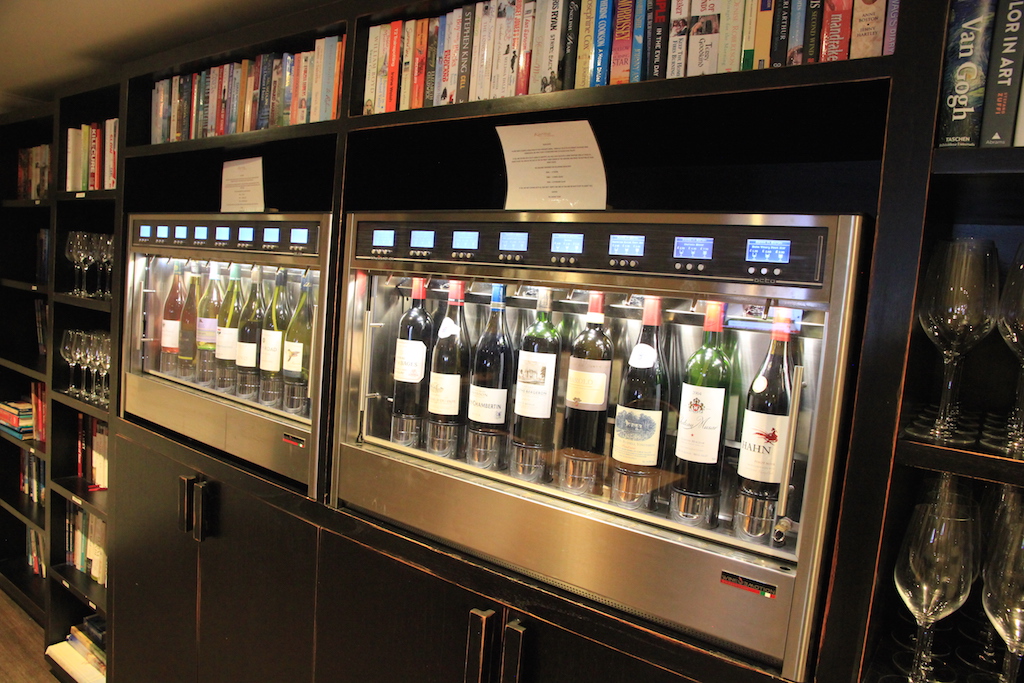 Im Karma gibt es einen Weinautomaten. Was zunächst komisch klingt, ist eine ganz spannende Sache. Wer einen Wein testen möchte, kann sich hier ein kleines Glas einschenken. Der Vorteil, ist, dass man so auch recht rare Weine probieren kann, die es sonst nur Flaschenweise gibt. Durch den Automaten ist die offene Flasche länger haltbar.
