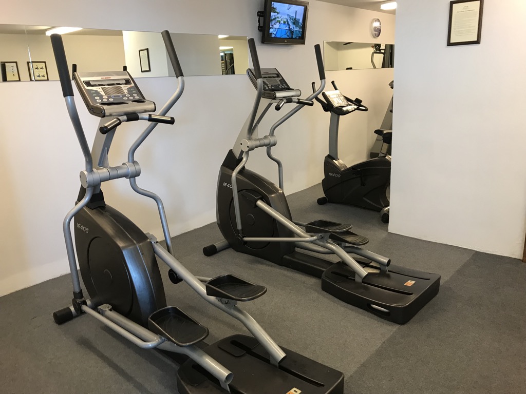 Das Gym war klein, aber funktional ausgestattet. Neben Geräten für Ausdauersport gab es auch freie Gewichte und Geräte fürs Krafttraining.