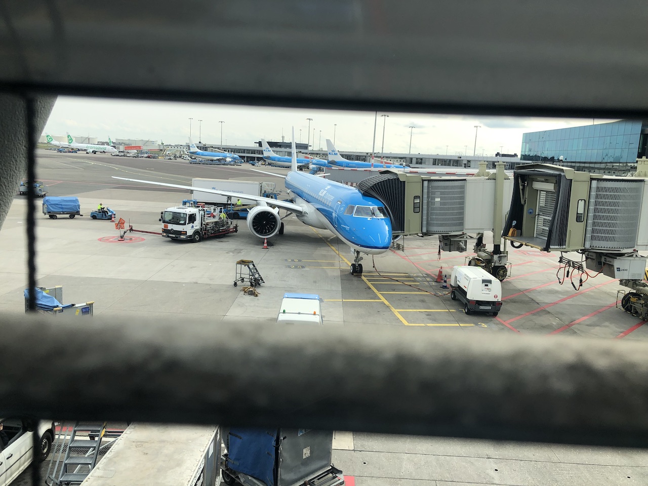 Nach der Landung waren wir trotz Terminalwechsel und Passkontrolle in Amsterdam frühzeitig am Gate des Fluges nach London.