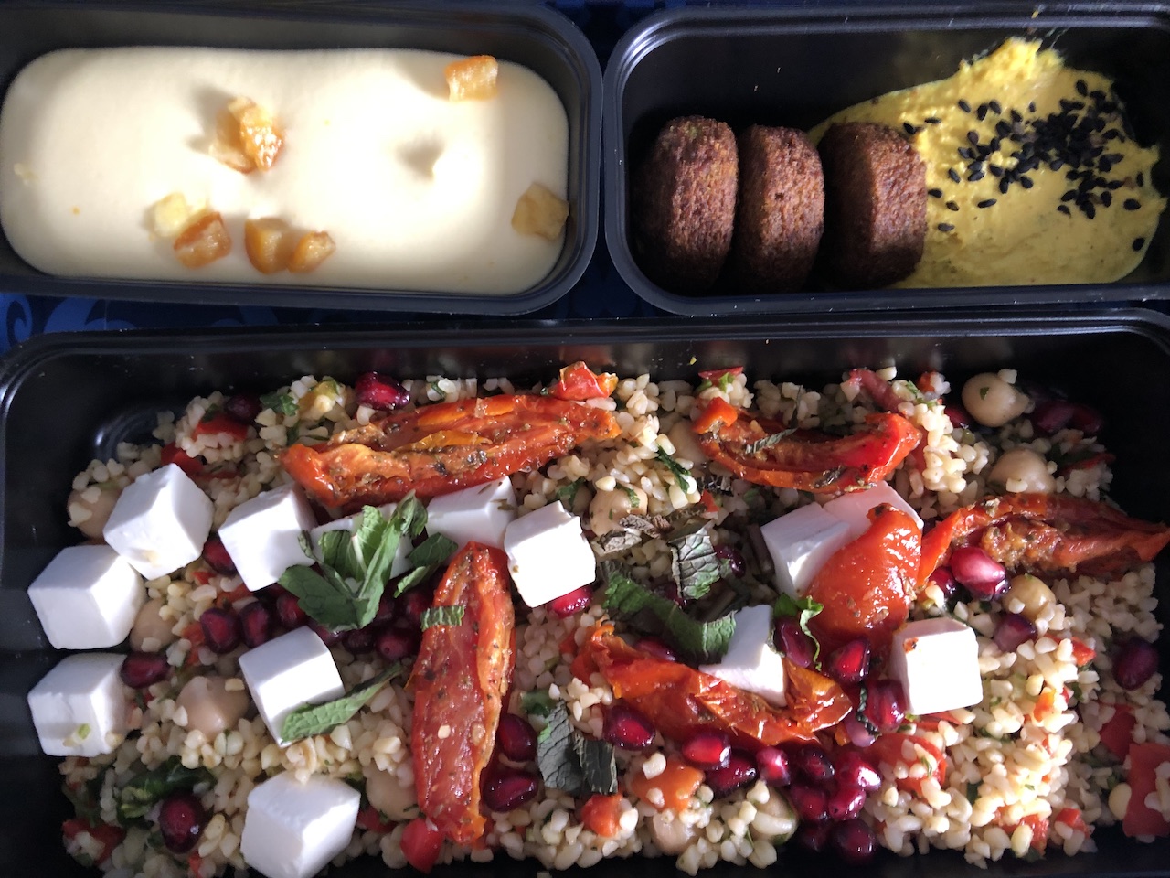 Ach so, die Frühstücksbox besteht übrigens aus zwei Pancakes mit etwas Konfitüre und einem Joghurt der so trocken ist, dass das ganze Granola darin stecken bleibt.