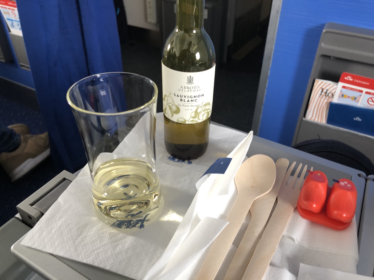 Diesmal gab es noch am Boden zur Begrüssung ein Getränk mit Keks und Desinfektionstuch. Auch dieser Flug war pünktlich unterwegs und etwas kürzer als das vorherige Segment.
