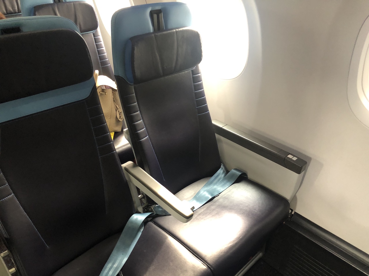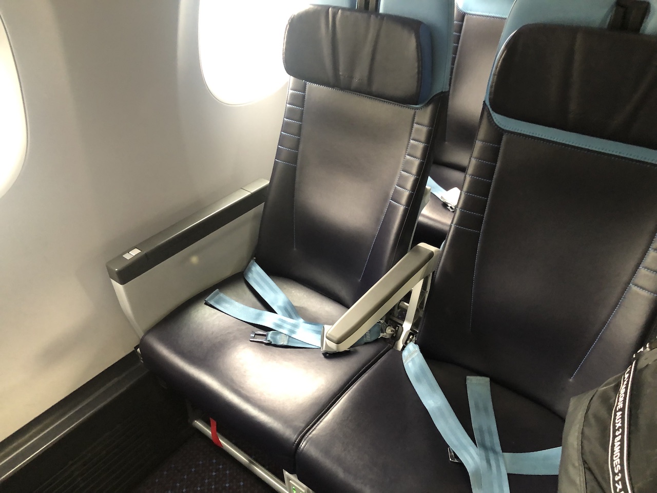 Nach einem ausgiebigen Aufenthalt in der Skycourt Lounge sind wir zum Gate, wo der Cityhopper-Jet bereits angedockt war. Sky Priority Gäste, also Statuskunden und Reisende der Business Class konnten zuerst einsteigen. Der Flug war nicht ausgebucht, die Passagiere wurden gebeten trotzdem die zugewiesenen Plätze einzunehmen und diesen nur in Absprache mit der Crew zu wechseln.
