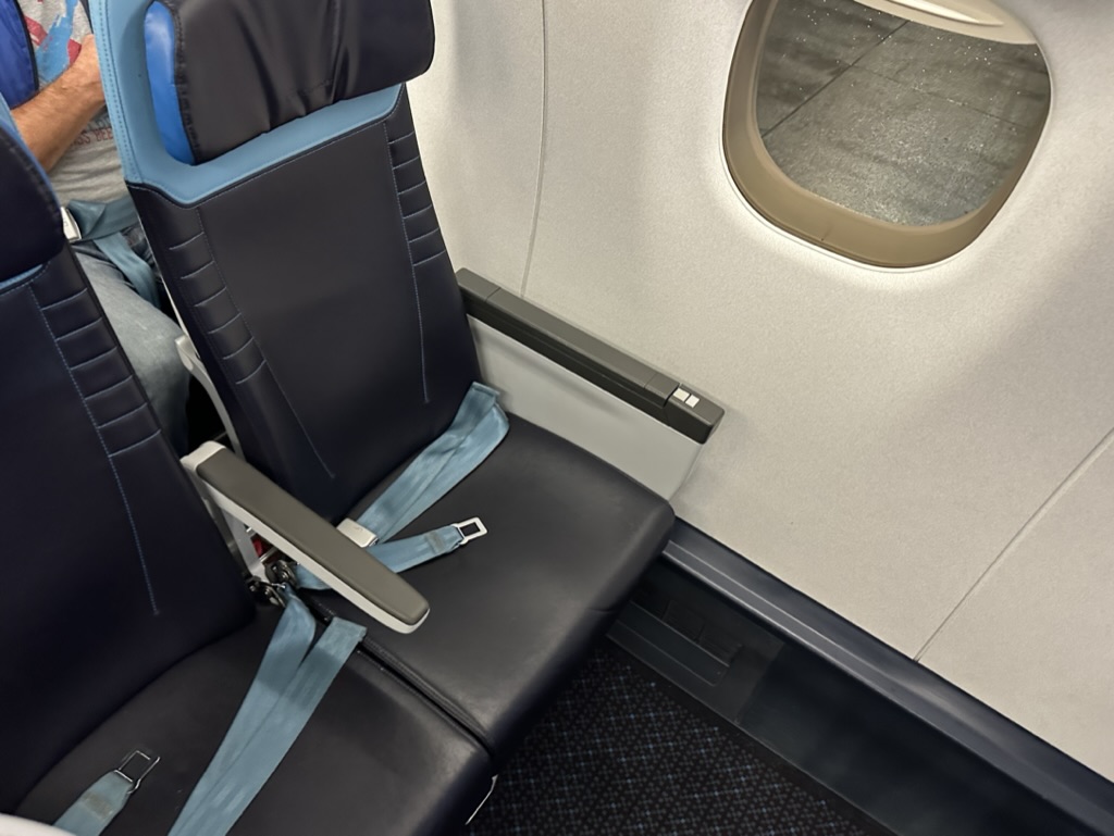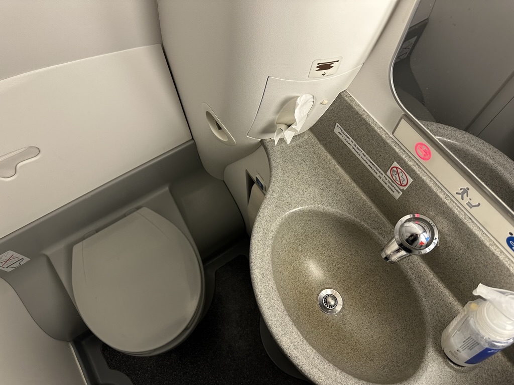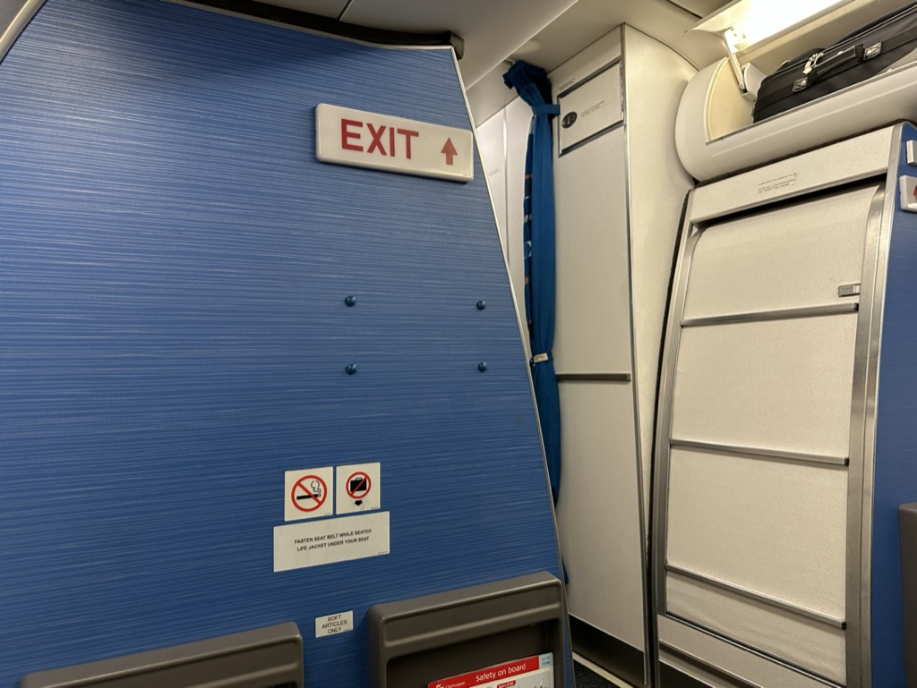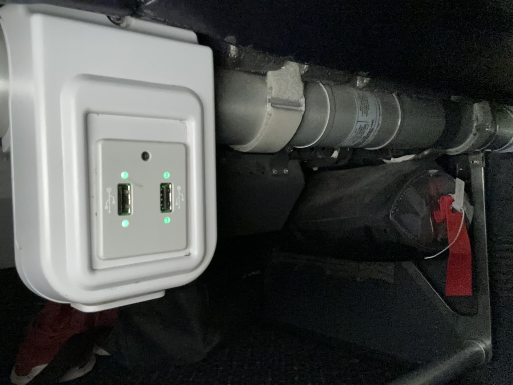 In dem Flugzeug war sogar noch ein Garderobenschrank, wobei es trotz der Buchungslage ausreichend Platz für Handgepäck gab. An den Sitzen sind USB-Ladebuchsen installiert, vorne war ein kleiner Waschraum ohne weitere Ameneties.