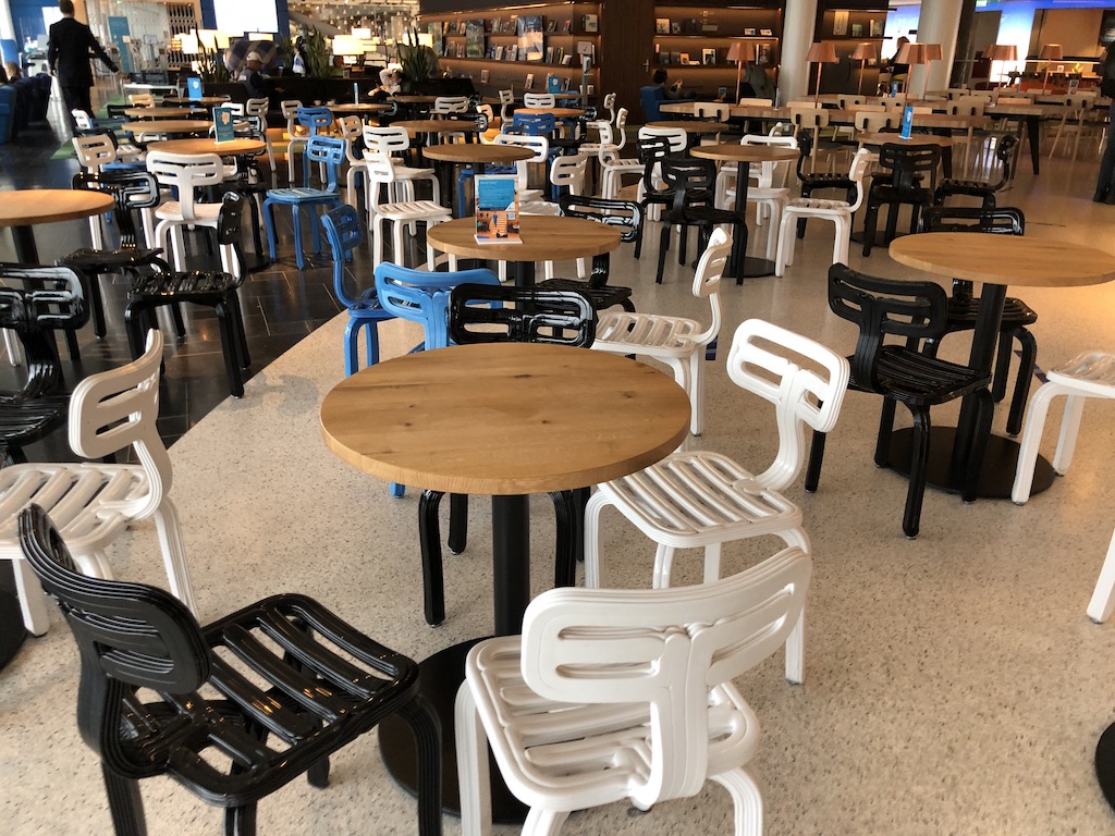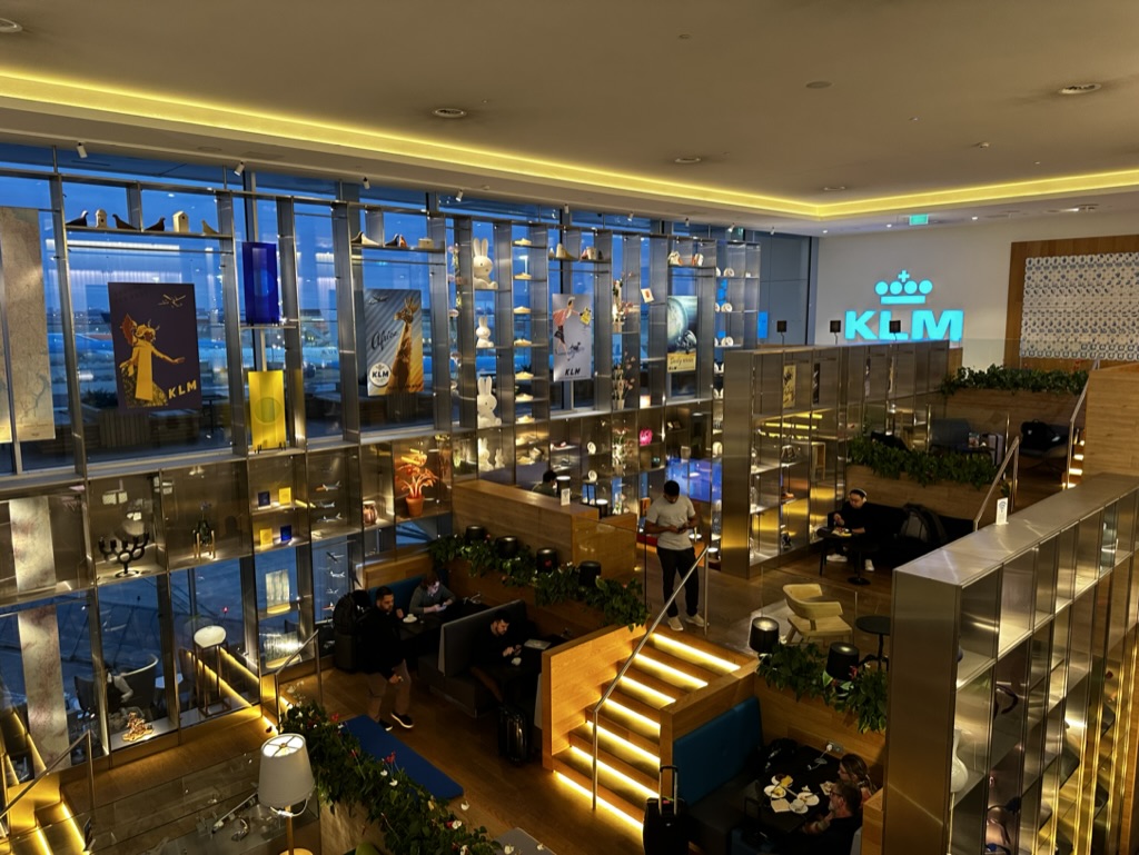 KLM hatte noch vor der Pandemie die riesige Crown Lounge im non Schengen Bereich am Flughafen Amsterdam eröffnet. Mit einer Größe von 6.800qm² hat die Einrichtung neue Maßstäbe bei den Vielfliegern und Business Class Gästen gesetzt. Inzwischen besteht die Räumlichkeit schon seit fünf Jahren, an manchen Stellen ist der Lack schon inzwischen abgeblättert. Die Crown Lounge hat aber nach wie vor das beste Angebot in Schiphol, die Fläche ist einfach bemerkenswert.