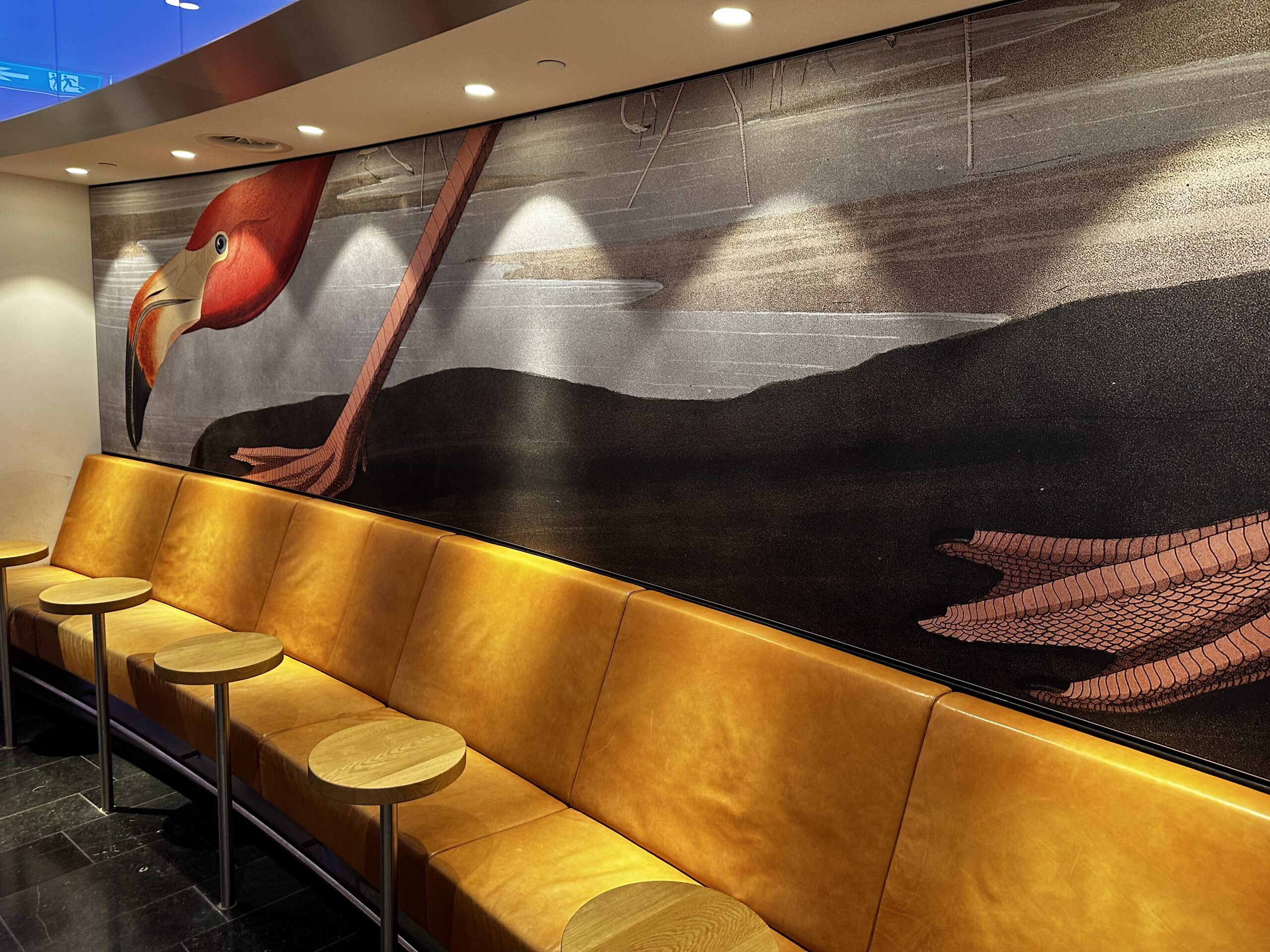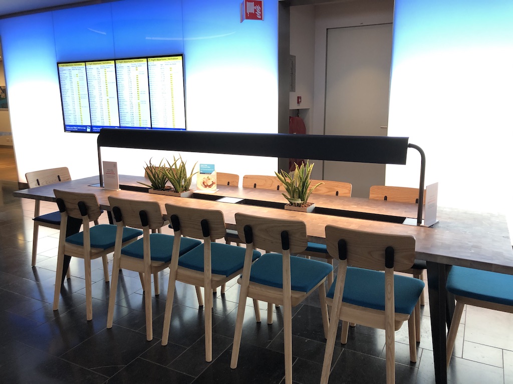 Die Lounge ist in der Tat groß. Man hat also Platz. Ist sie gemütlich? Ich finde, eher nicht. Die ganze Atmosphäre erinnert mich irgendwie an eine Bahnhofshalle – oder nein, an eine allgemeine Flughafen-Lounge. Aber nicht an eine Premium Lounge eines großen Airline Verbundes.