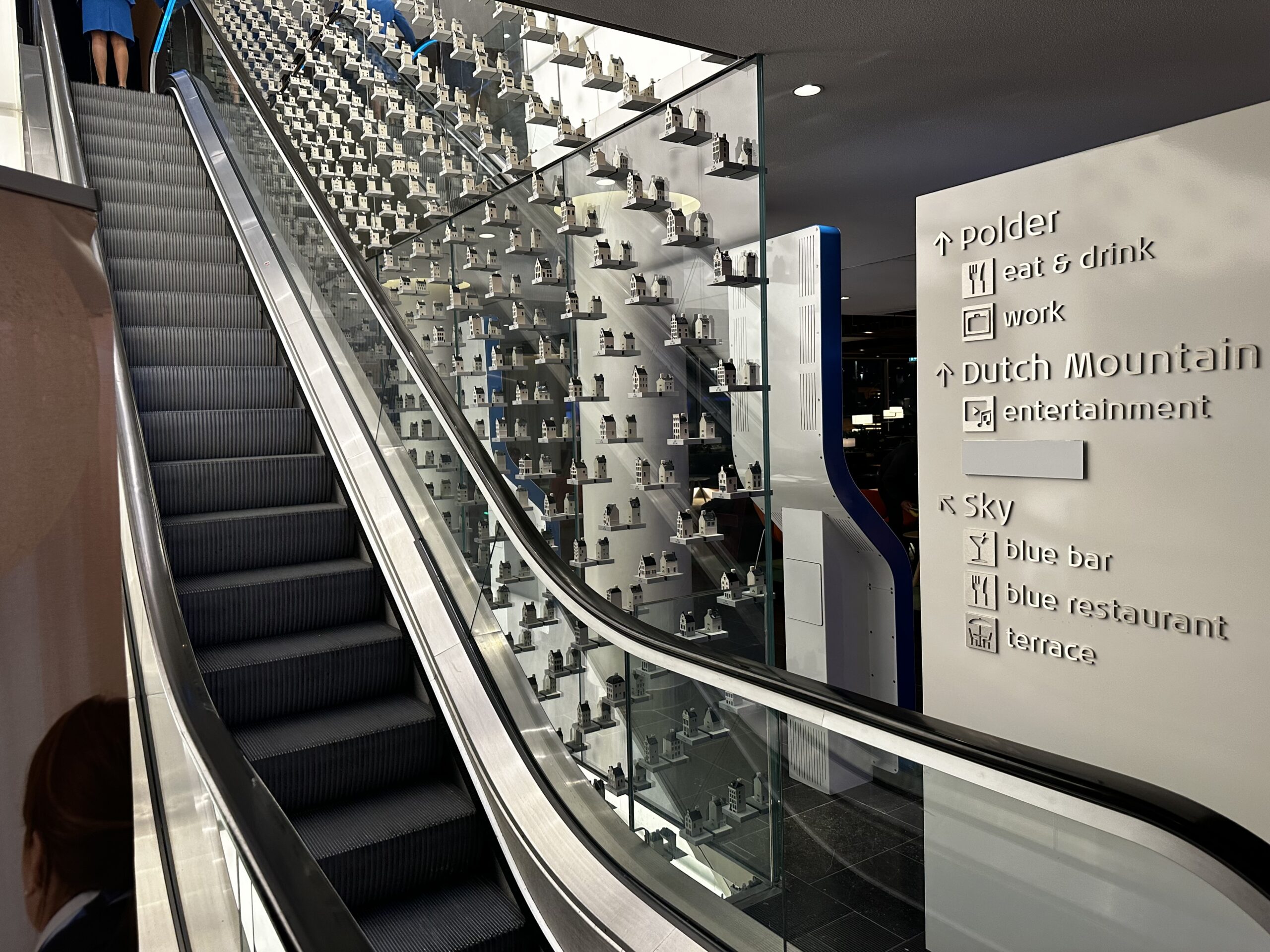 Für das große Angebot ist der Wegweiser gerechtfertigt. Die Bereiche sind in „Polder“, „Sea“, „Mountain“ und „Sky“ unterteilt. Diese stehen für essen, arbeiten, Unterhaltung oder Erfrischung. Einen Lageplan findet man auf der Lounge-Seite von KLM.