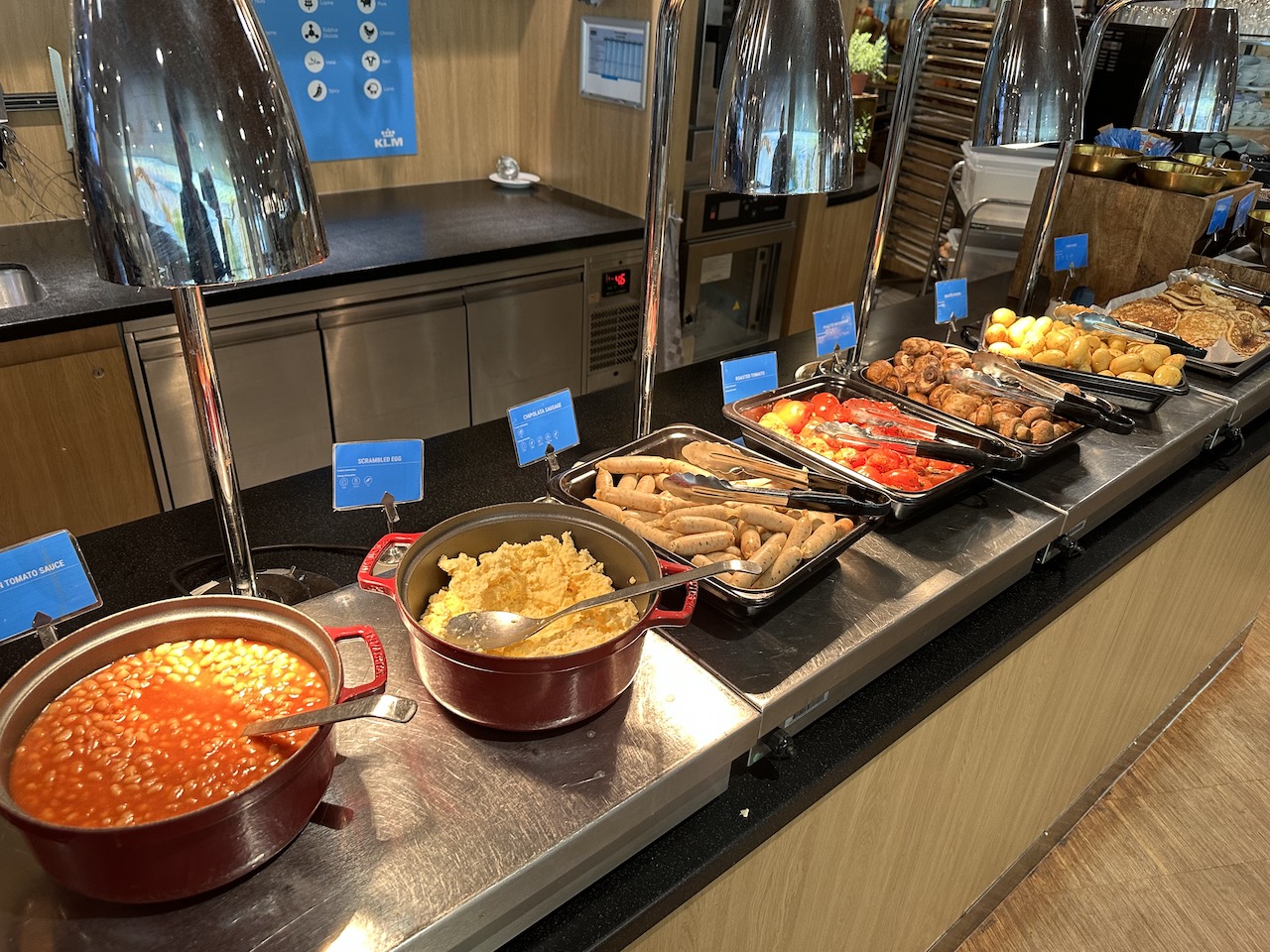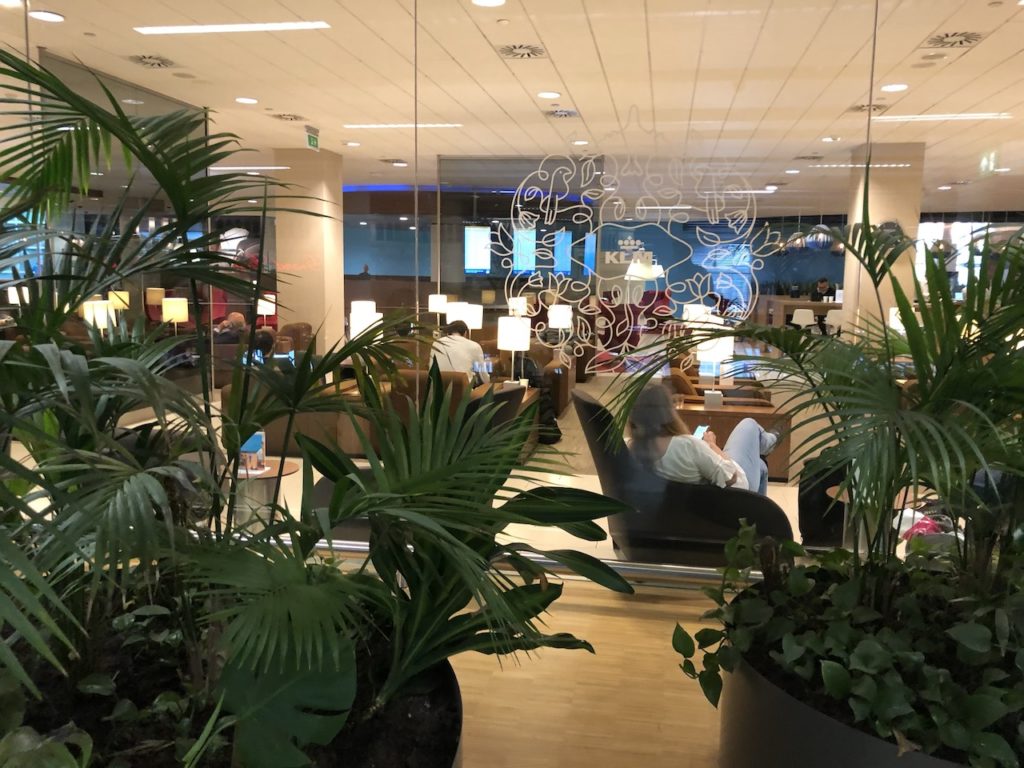 KLM ist eine riesige Airline, am Hub in Amsterdam muss also etwas geboten werden. Die Räumlichkeit könnte durchaus etwas größer sein, Stoßzeiten gibt es mehrfach täglich, dann wird es ganz schön voll. Immerhin kann man sich in einigen Ecken entfernt vom Buffet meist noch einen ruhigeren Platz schnappen.