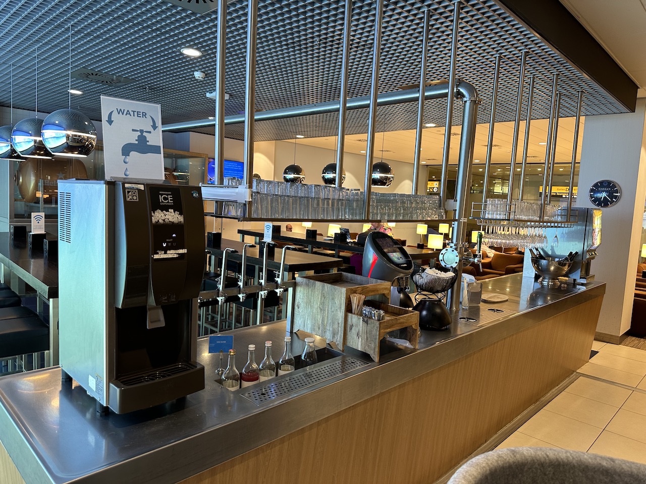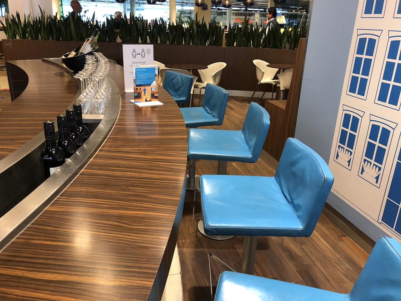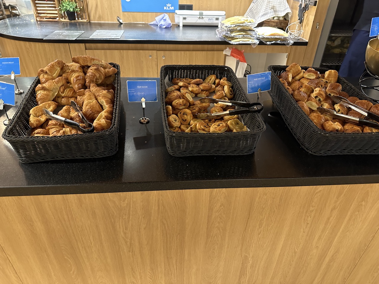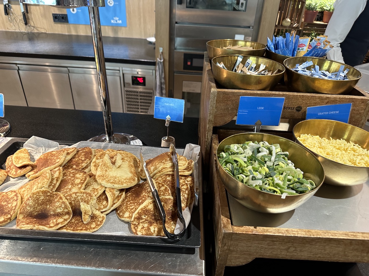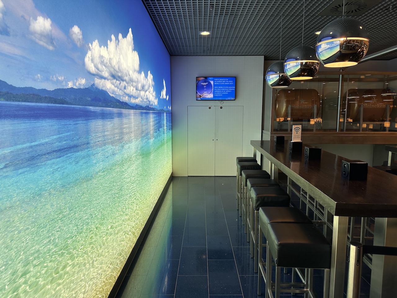 KLM ist eine riesige Airline, am Hub in Amsterdam muss also etwas geboten werden. Die Räumlichkeit könnte durchaus etwas größer sein, Stoßzeiten gibt es mehrfach täglich, dann wird es ganz schön voll. Immerhin kann man sich in einigen Ecken entfernt vom Buffet meist noch einen ruhigeren Platz schnappen.