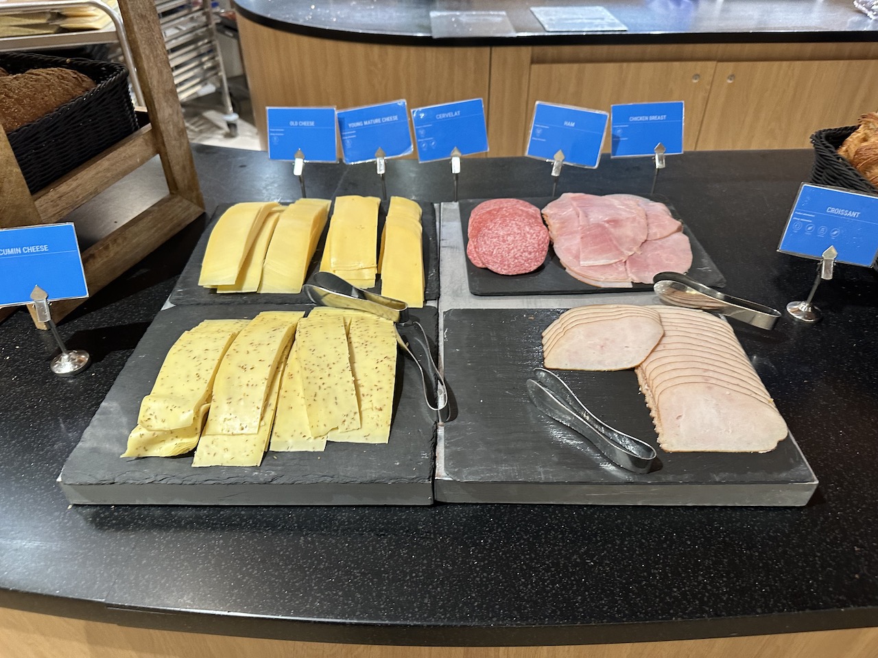 Bei meinem Besuch um 7 Uhr morgens war der Fokus auf Frühstück, zahlreiche kalte Speisen und warme Gerichte stehen zur Selbstbedienung.