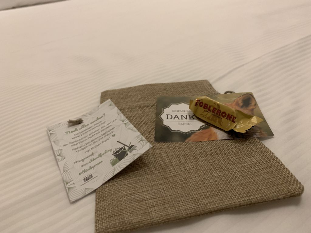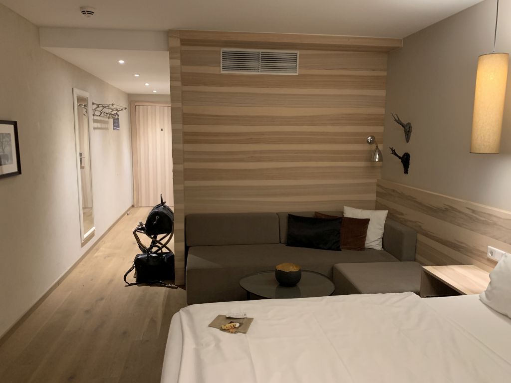 Bei der Anreise am Donnerstagmorgen ließ ich zunächst meine Tasche im Auto und wartete in der Lobby auf die restlichen Kollegen. Erst nach dem Ende des ersten Tages unserer Veranstaltung ging ich zur Rezeption, um meine Zimmerschlüssel zu erhalten. Alles war schon vorbereitet und so musste ich lediglich meine Schlüsselkarte für das Zimmer im Spa-Gebäude entgegen nehmen. Da das Zeitfenster bis zum Abendessen knapp war, war ich dankbar für die schnelle Abwicklung.