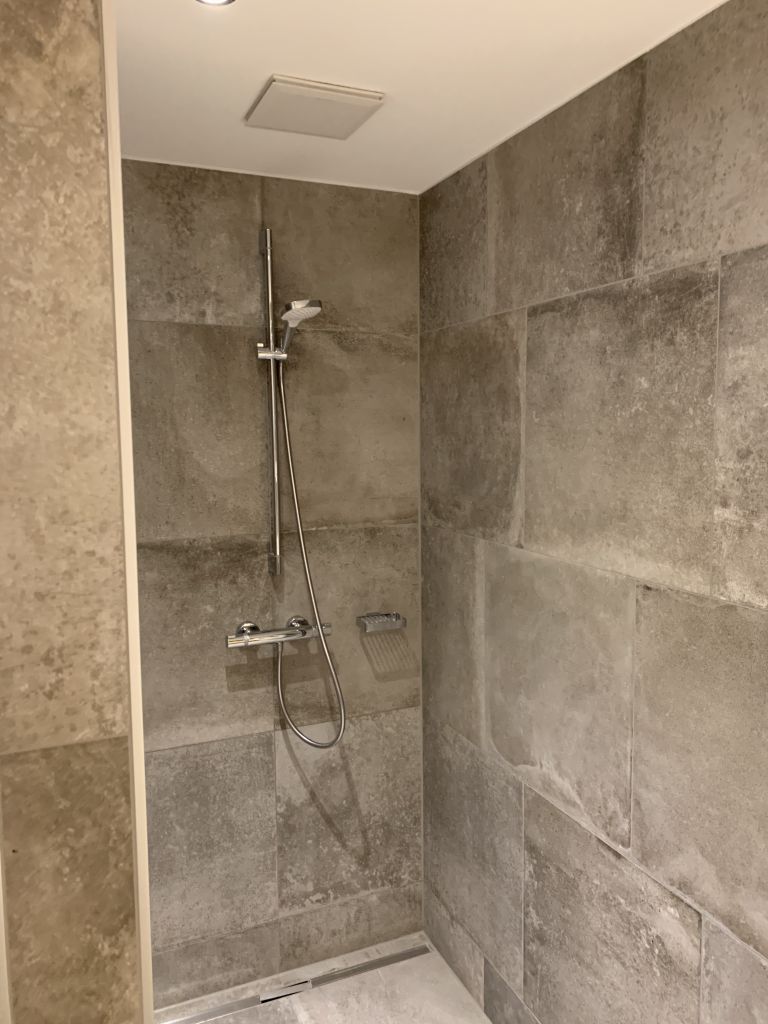 Das Zimmer war in modernem Design mit hellem Holz und grauen Möbeln und Fliesen eingerichtet. Alles funktionierte einwandfrei und ich konnte nirgends Abnutzungserscheinungen erkennen.