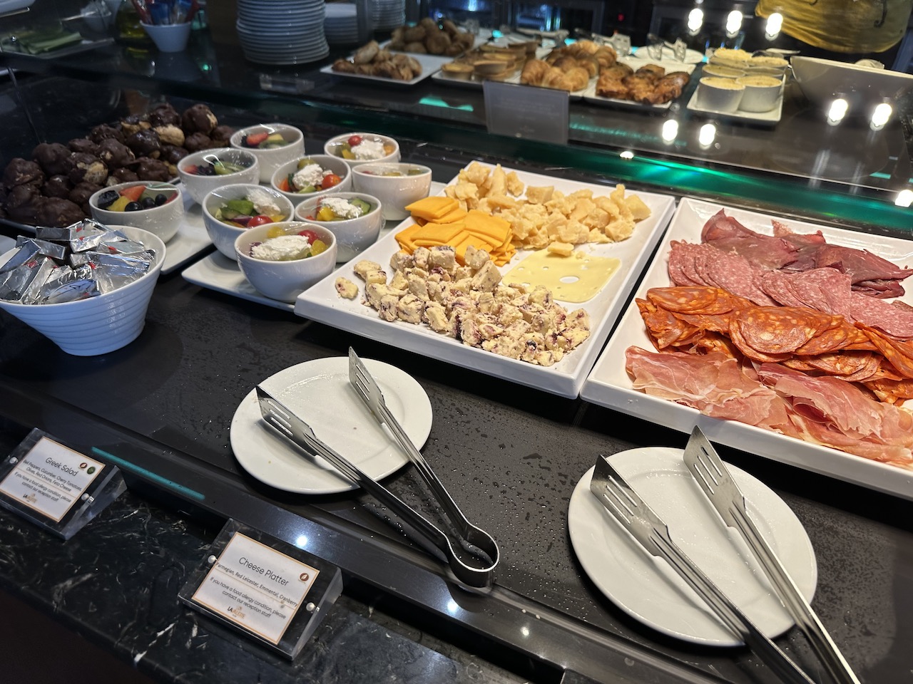 Ansagen in Dauerschleife gibt es hier nicht, was in manchen Lounges sonst ziemlich nervig werden kann. Wie so oft kommen die Mitarbeiter bei zu viel Andrang nicht hinterher, dann ist das Buffet rasch geplündert und an den Sitzbereichen stapeln sich benutztes Geschirr und Müll.