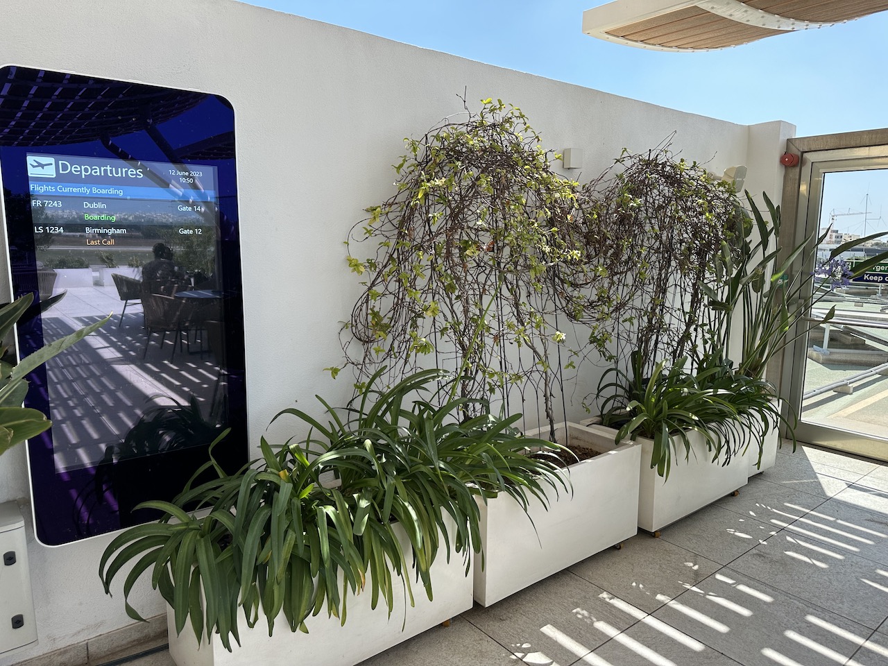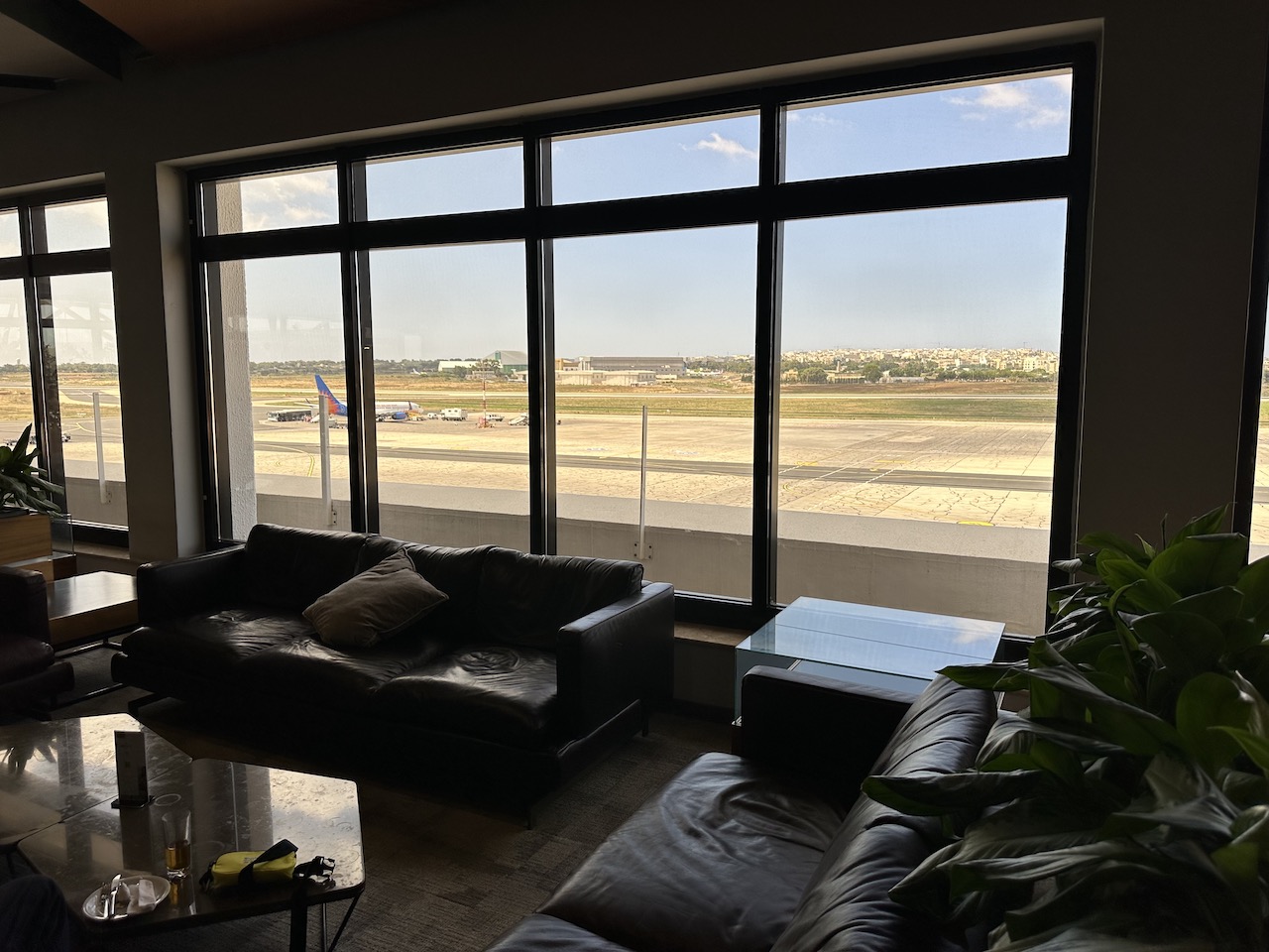 Die La Valette Lounge bietet viel Raum und eine etwas ruhigere Umgebung als an den Gates, wobei es in der Hauptsaison im Terminal überall ziemlich voll werden kann. Ein dickes Plus ist die Terrasse, und generell der Ausblick auf das Vorfeld.