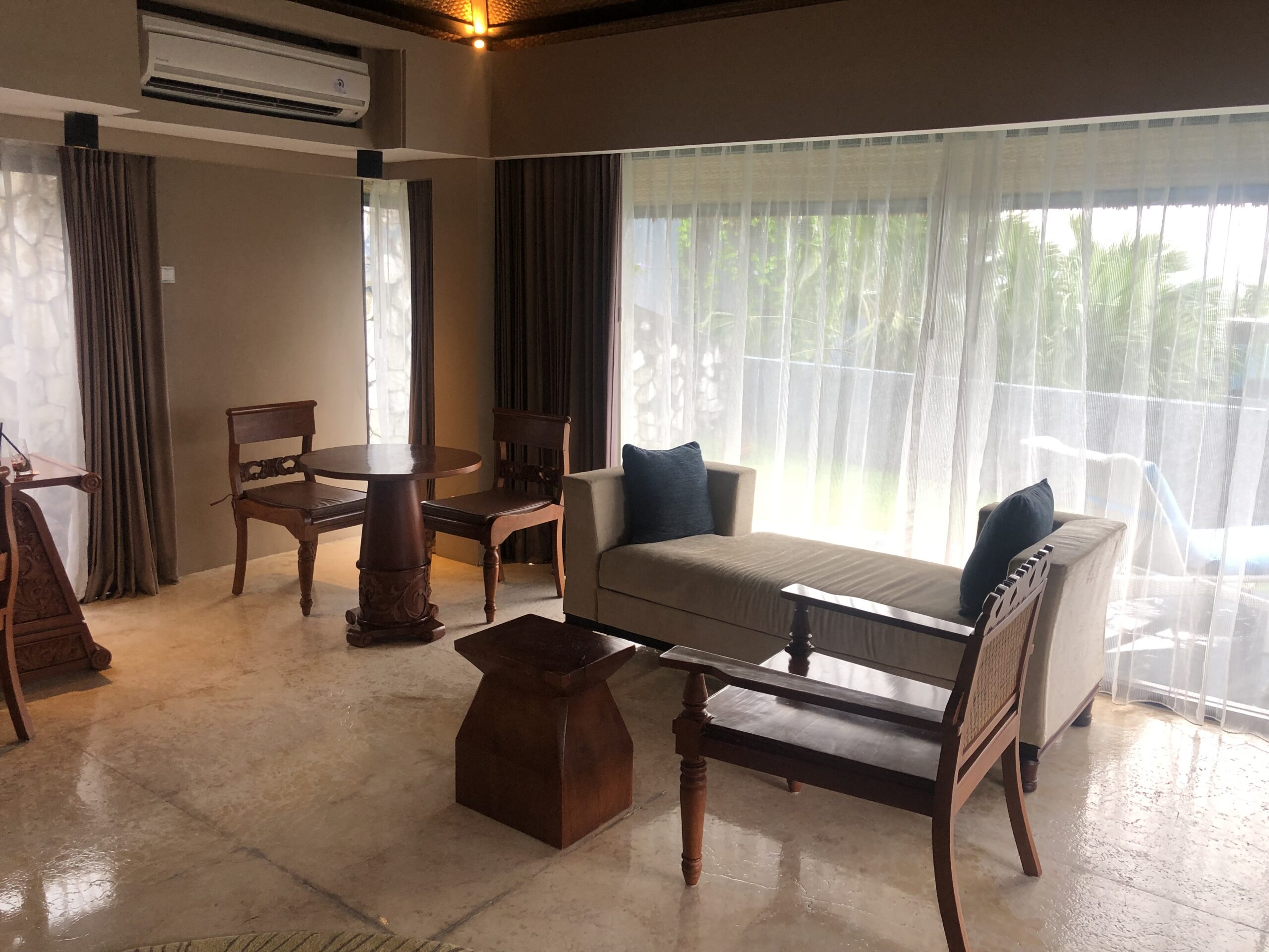 In mehreren Bewertungen haben Statuskunden von der Upgrade-Policy des Hotels berichtet, diese Gäste wurden meist in ein größeres Aqua-Zimmer mit eigenem Poolzugang hochgestuft. Ich habe zum ersten Mal die Upgrade Voucher benutzt und war überrascht daß das Zimmer so schnell bestätigt wurde. Leider bin ich bei der Villa etwas in die Foto-Falle des Hotels getappt, die Zimmer waren schon ziemlich betagt.