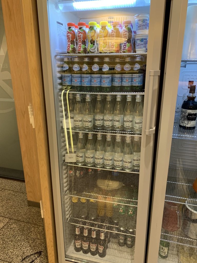 Die Auswahl an Getränken entspricht dem, was man von einer Lounge erwarten kann. Neben einem Kühlschrank mit verschiedenen alkoholfreien Getränken und Säften gab es auch Bier, Wein, Sekt und Spirituosen.