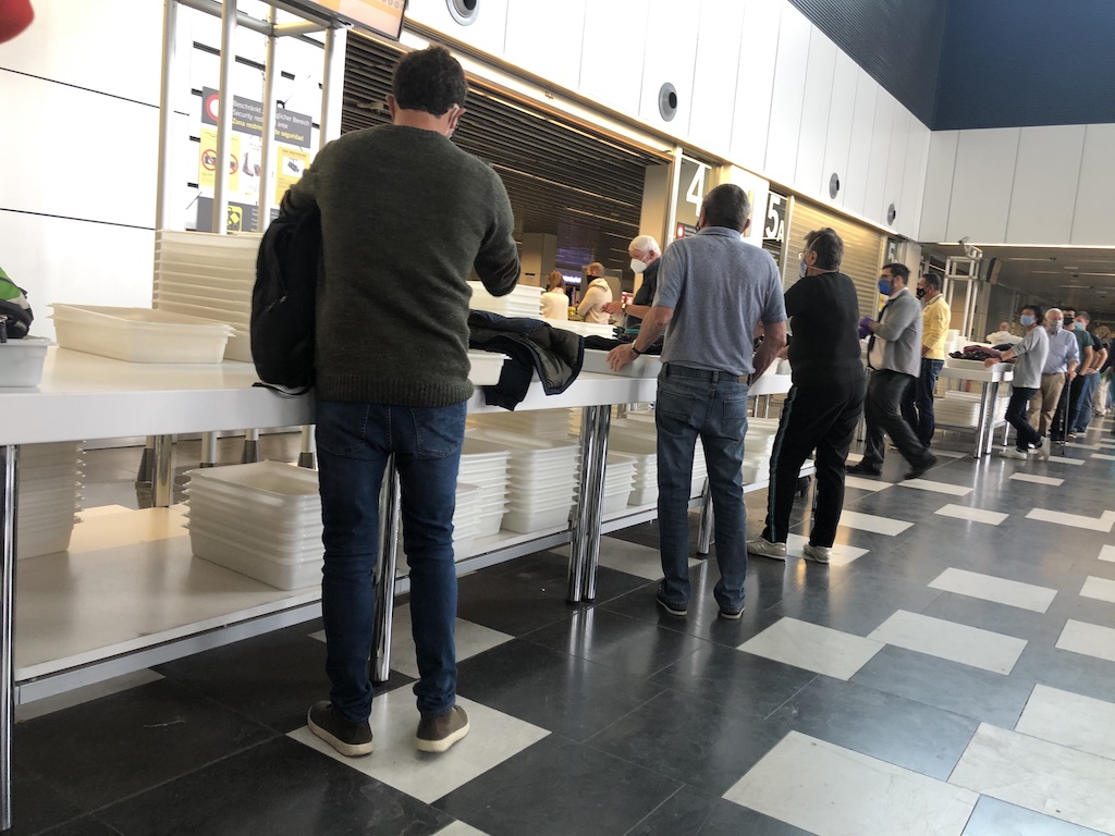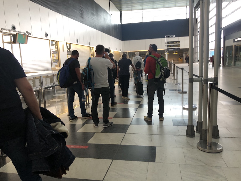 Es gab insgesamt vier Check-In Schalter, davon einer für Business Class & Statuskunden sowie ein weiterer nur für die Aufgabe von Koffern. Alleine beim Business-Schalter standen zwei Stunden vor Abflug etwa 30 Passagiere an. Da ich die Bordkarte schon auf dem Telefon hatte, bin ich zum Drop-off Desk und konnte nach gut 20 minütlicher Wartezeit das Gepäck aufgeben.