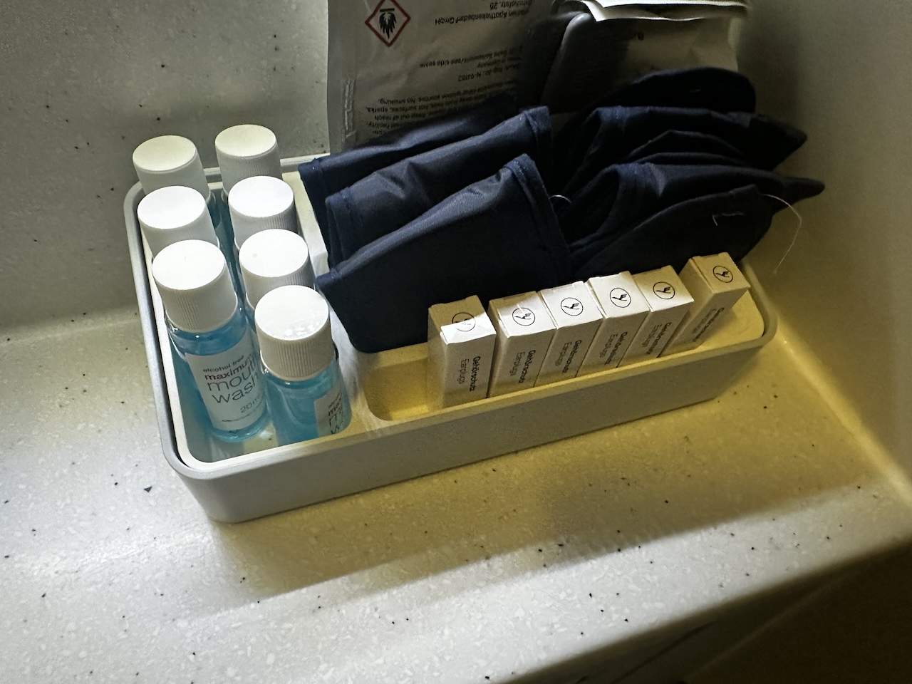 Der Fußraum mag für einige Gäste ein wenig zu eng sein, bei dem kurzen Tagflug heute war das kein Problem für mich. Die Toiletten sind hier in der Nähe der Sitze und könnten bei einem Nachtflug oder massiver Nutzung stören.