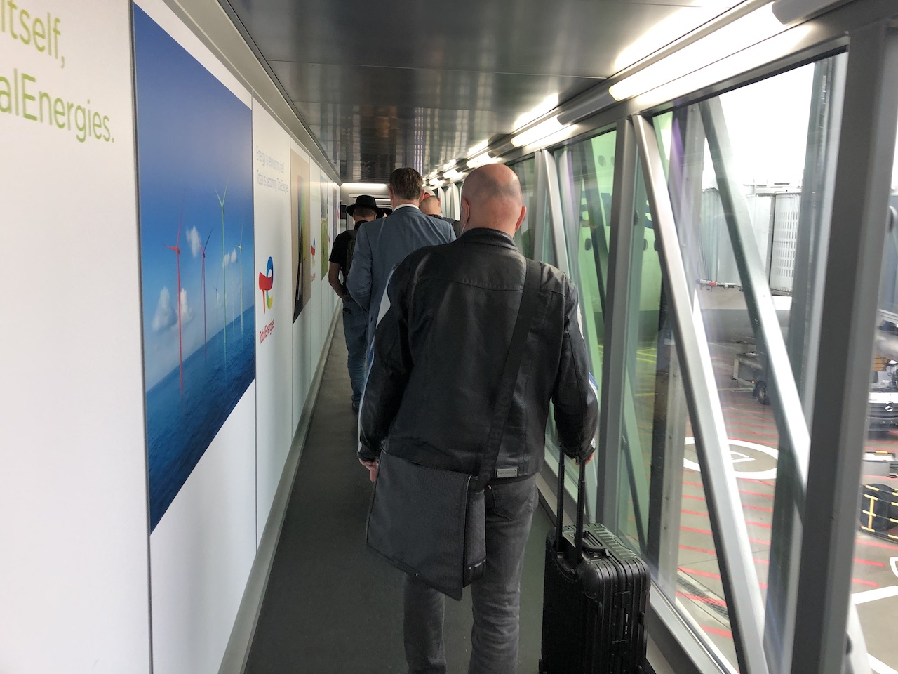 Die Koffer waren aufgegeben, Pass- und Sicherheitskontrolle innerhalb kürzester Zeit erledigt und der Urlaub konnte in der Lounge an den Z-Gates beginnen. Zum Beginn der Einsteigezeit ging es in Richtung Flugsteig, dort lief bereits eine Ansage dass sich das Boarding etwas verzögern wird. Nach wenigen Minuten ging es dann los, Familien mit kleinen Kindern und hilfsbedürftige Passagiere durften zuerst in das Flugzeug. Mit 80 Sitzplätzen alleine in der Business Class der 747 konnten anschließend entsprechend viele Reisende das Priority Boarding nutzen.