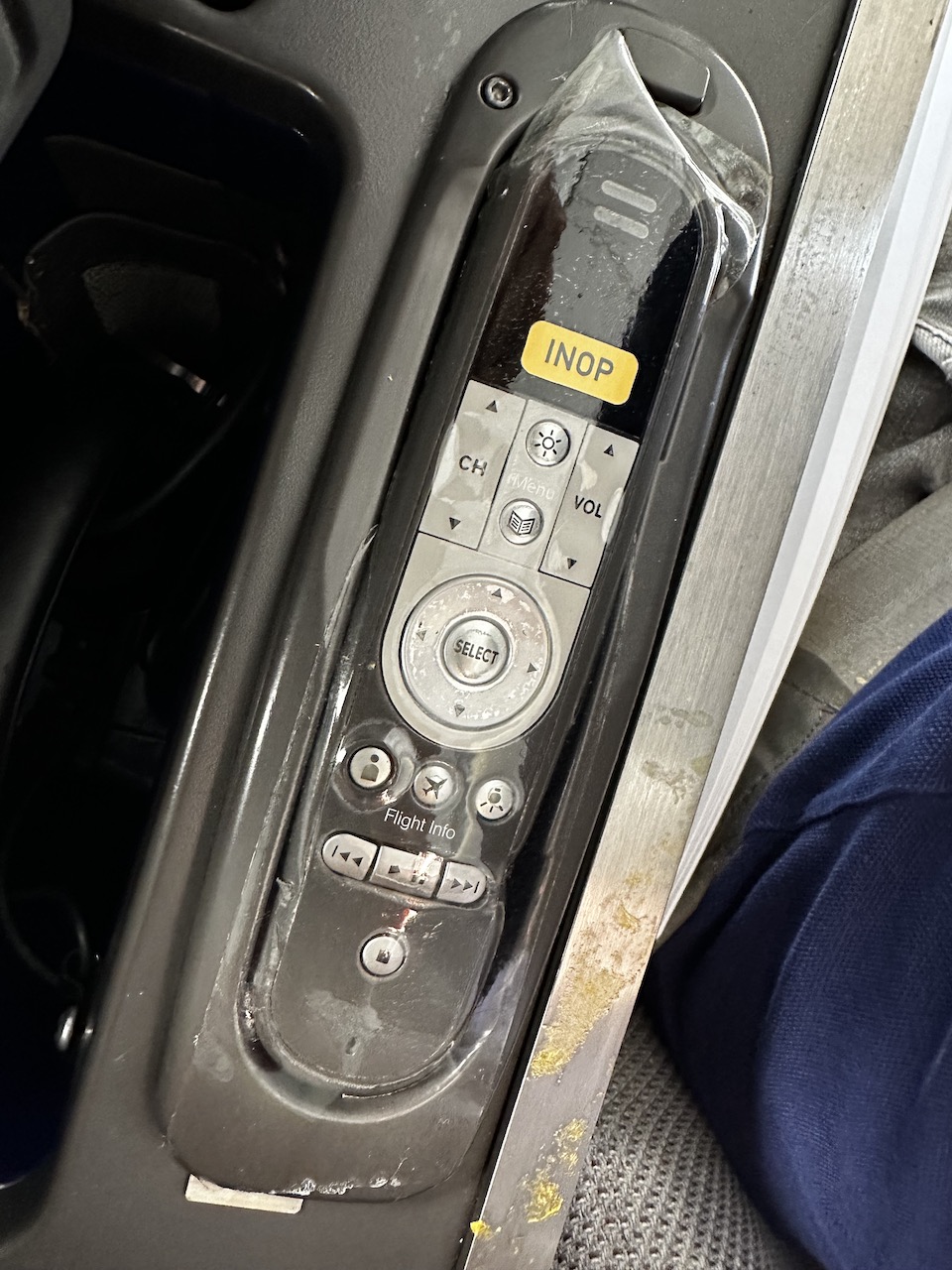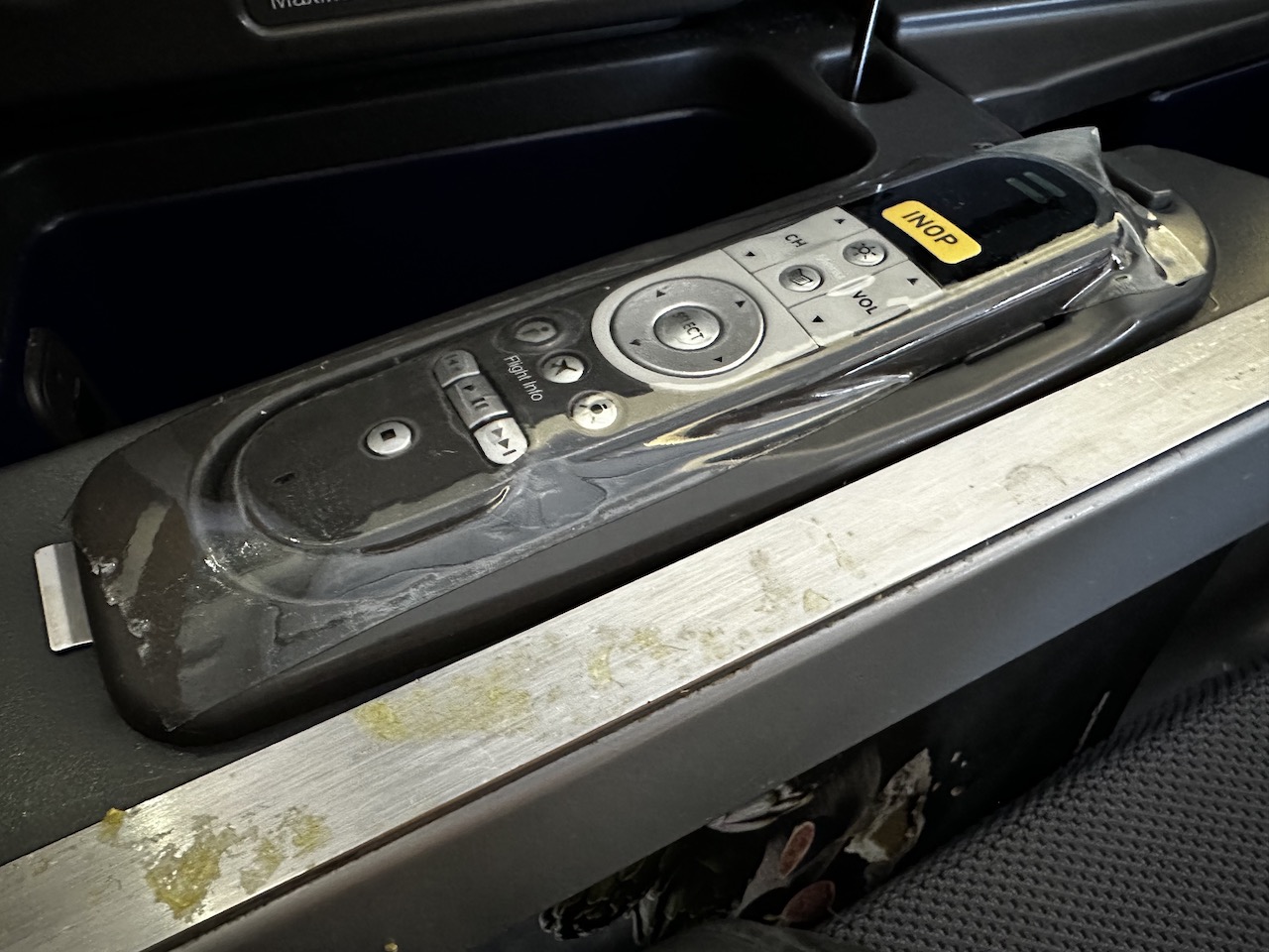 Der Purser kam vorbei, zeigte aber kein sonderliches Interesse an der defekten Fernbedienung und meinte „schon Schlimmeres“ gesehen zu haben.