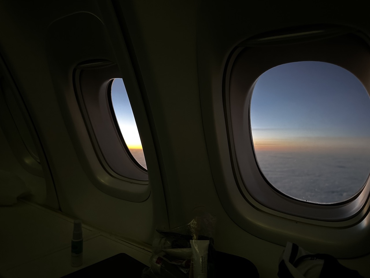 Nach ein paar Stunden Schlaf wurde es langsam wieder hell draußen, es gab Frühstück und aus dem Cockpit einige Informationen zum Flug.